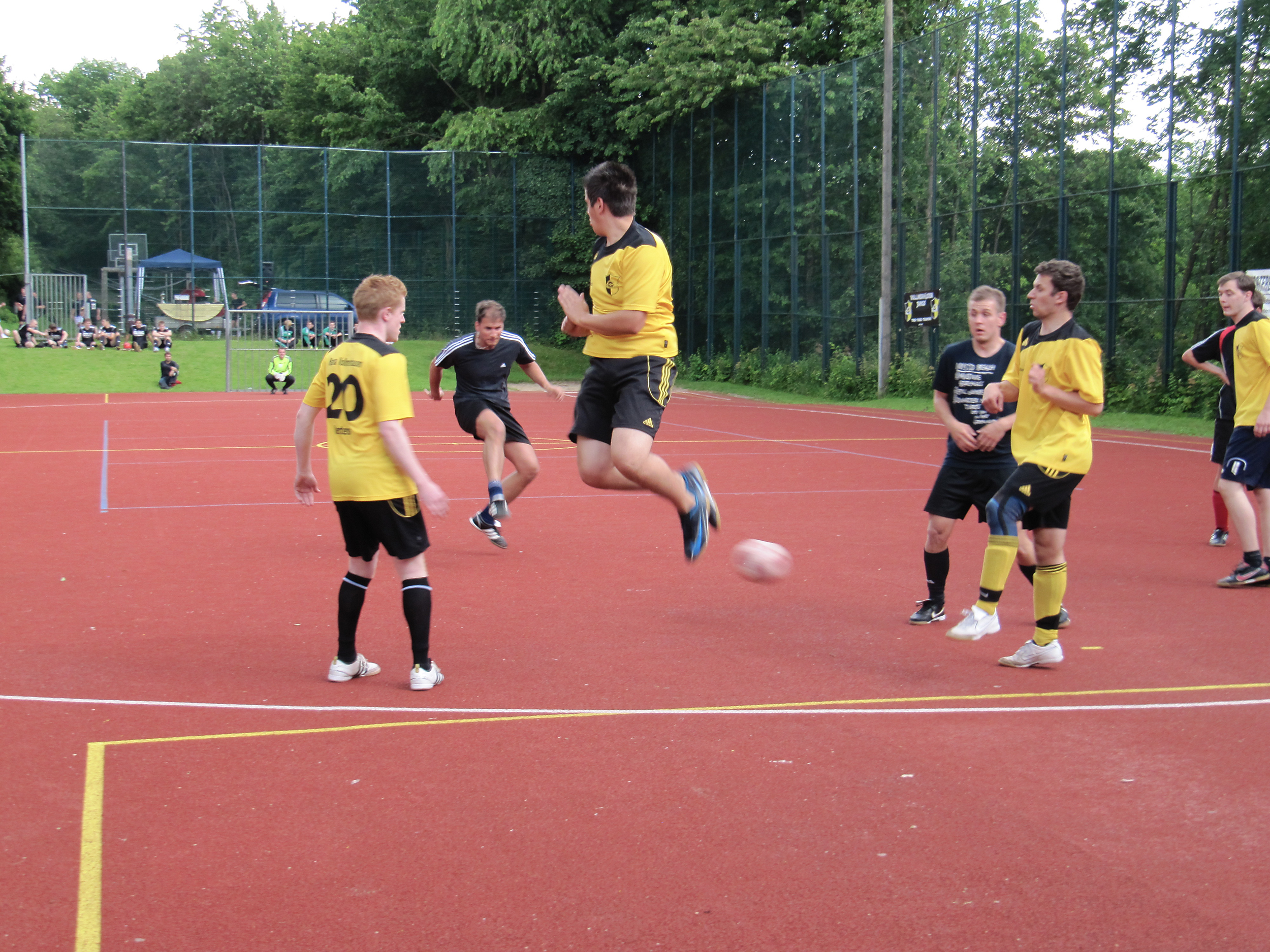 Zehn Mannschaften kämpften bei gutem Wetter auf und neben dem Platz um die Pokale. Den Schluckspechtpokal sicherte sich LGH Dynamite klar mit 159 getrunkenen Flaschen Kölsch vor Hansa Vollmerhausen (72 Flaschen) und Oberbergs Gelbe Wand (68 Flaschen).