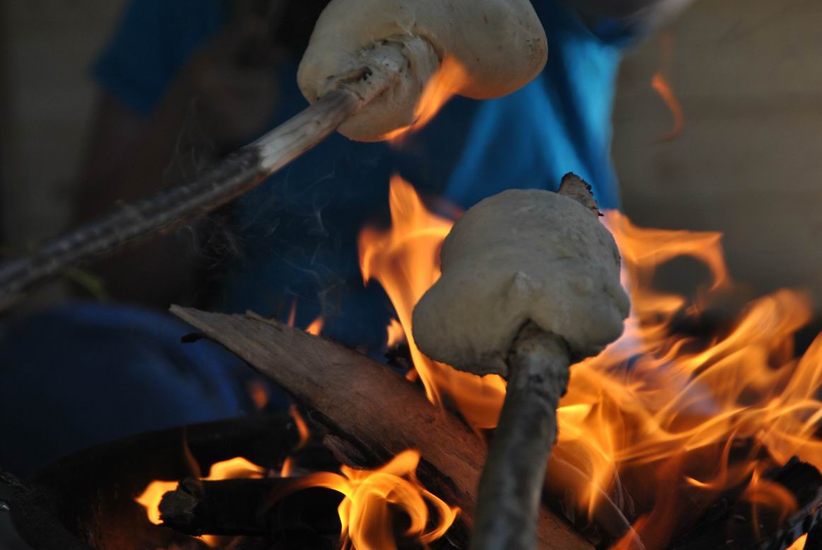 Die „Nebelkrähen“, angeführt von Daniel Pathmann, Stammesname „ Vatti Crow“, lockten die Besucher mit Stockbrot, was jeder selber am Lagerfeuer des Pfadfinderzeltes backen konnte.