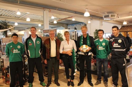 Der erste Vorsitzende Wolfgang Waldheim sowie Trainer Werner Thies und die Spieler Hakan Gürsoy, Sascha Nußbaum und Christoph Chylla nahmen das neue Outfit in Empfang und bedankten sich bei Richters für die großzügige Unterstützung.