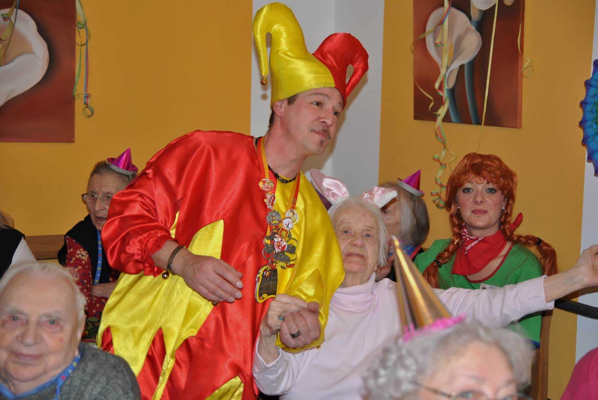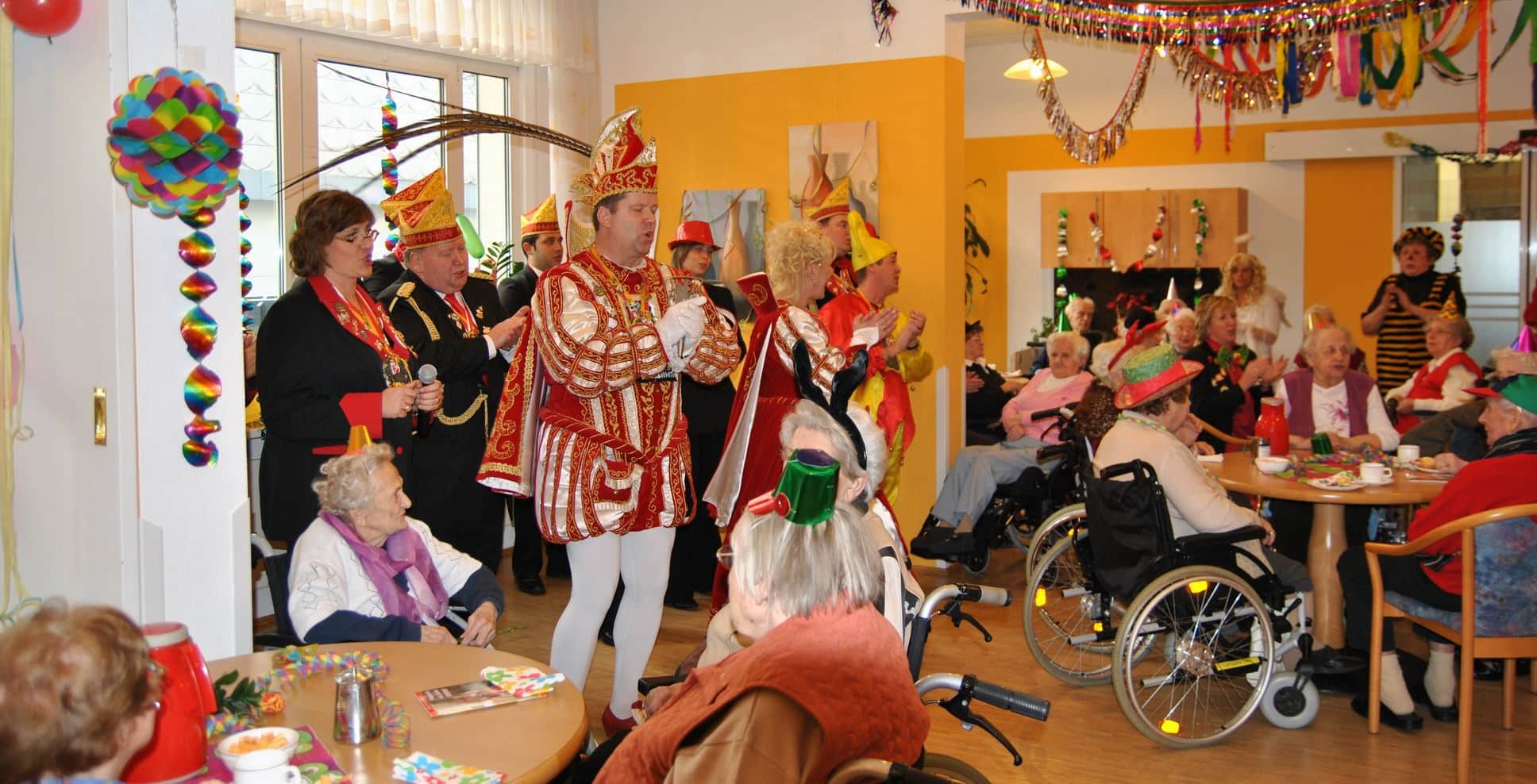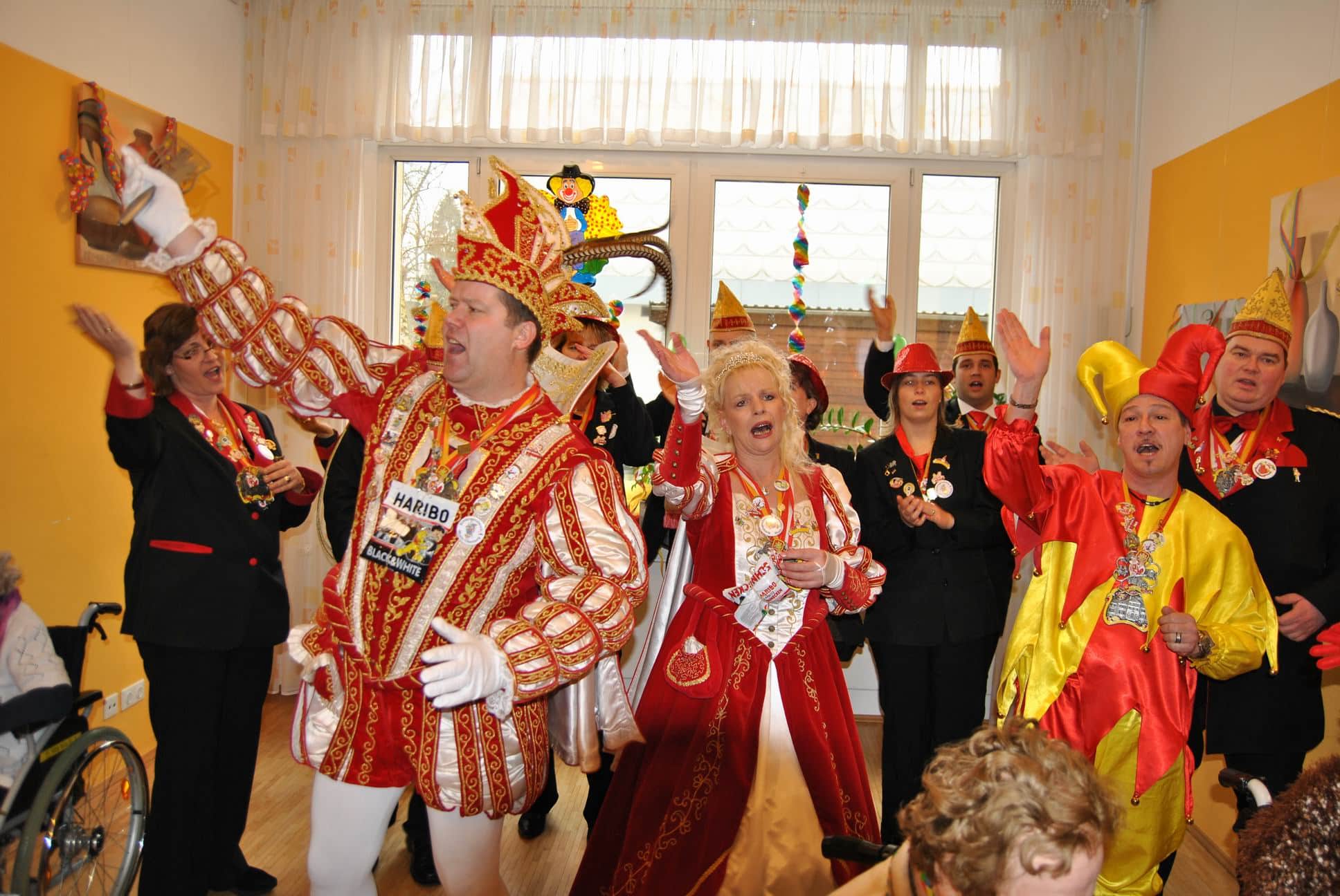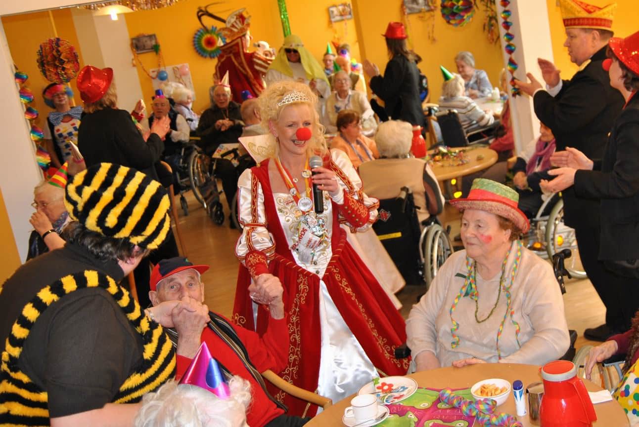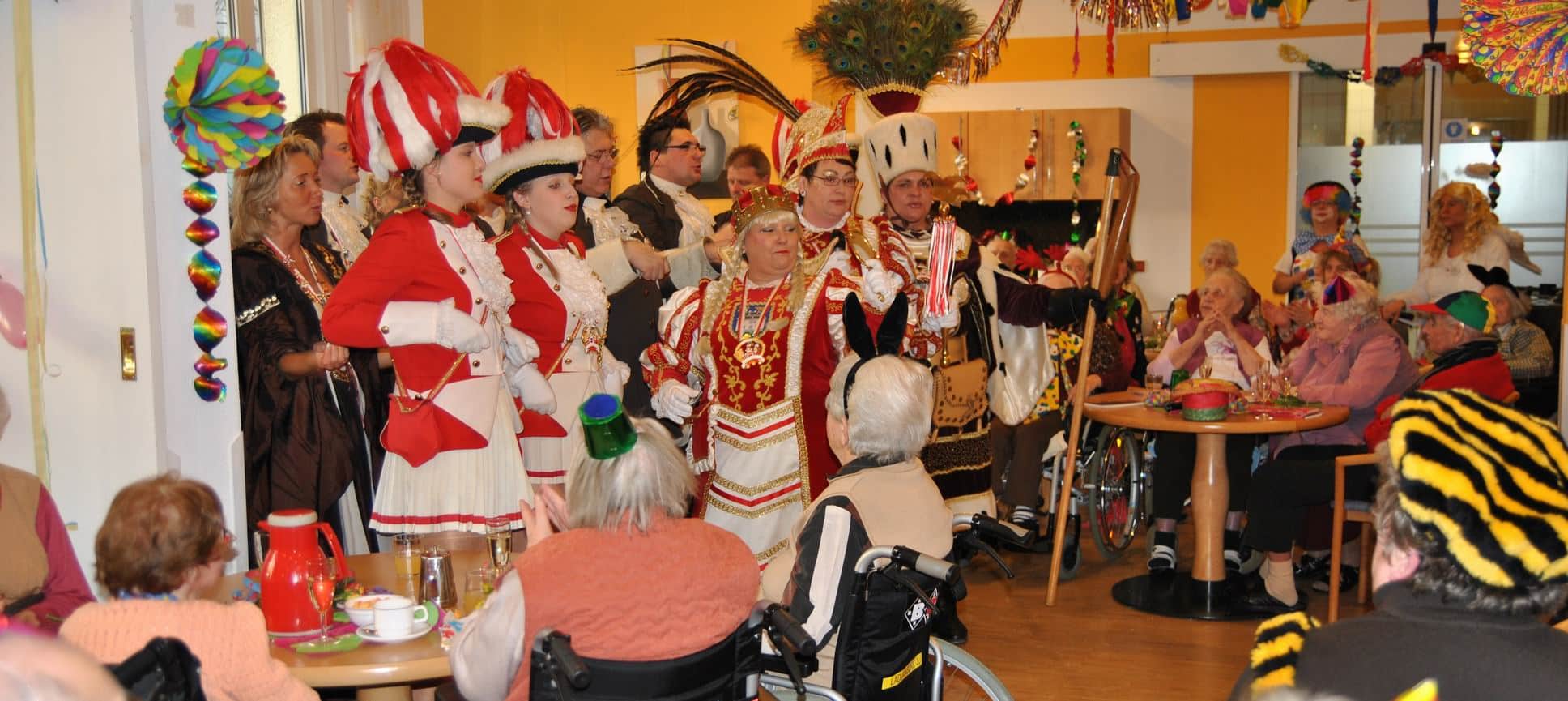 Das Programm wurde u.a. traditionsgemäß von den Karnevalsvereinen RKV 1975 e.V. Ründeroth, mit Prinz Frank II. und Prinzessin Angelika, sowie der KG Rot Weiß Denklingen, mit dem ersten weiblichen Dreigestirn des Vereins, Prinz Anne I., Jungfrau Moni und Bauer Ela, gestaltet, die es sich trotz eisglatten Straßen nicht von ihren Besuchen abschrecken ließen. Beide Vereine zogen mit Ihren Tollitäten sowie ihrem Hofstaat ins Seniorenheim ein, nur die Kindertanzgruppe der Denklinger Karnevalisten, musste dem Wetter Tribut zollen und blieb leider zu Hause. Mit ihren farbenprächtigen Kostümen, guter Laune und schwungvoller Musik versetzten sie die Bewohner in Karnevalshochstimmung und luden zum Mitsingen und Schunkeln ein.