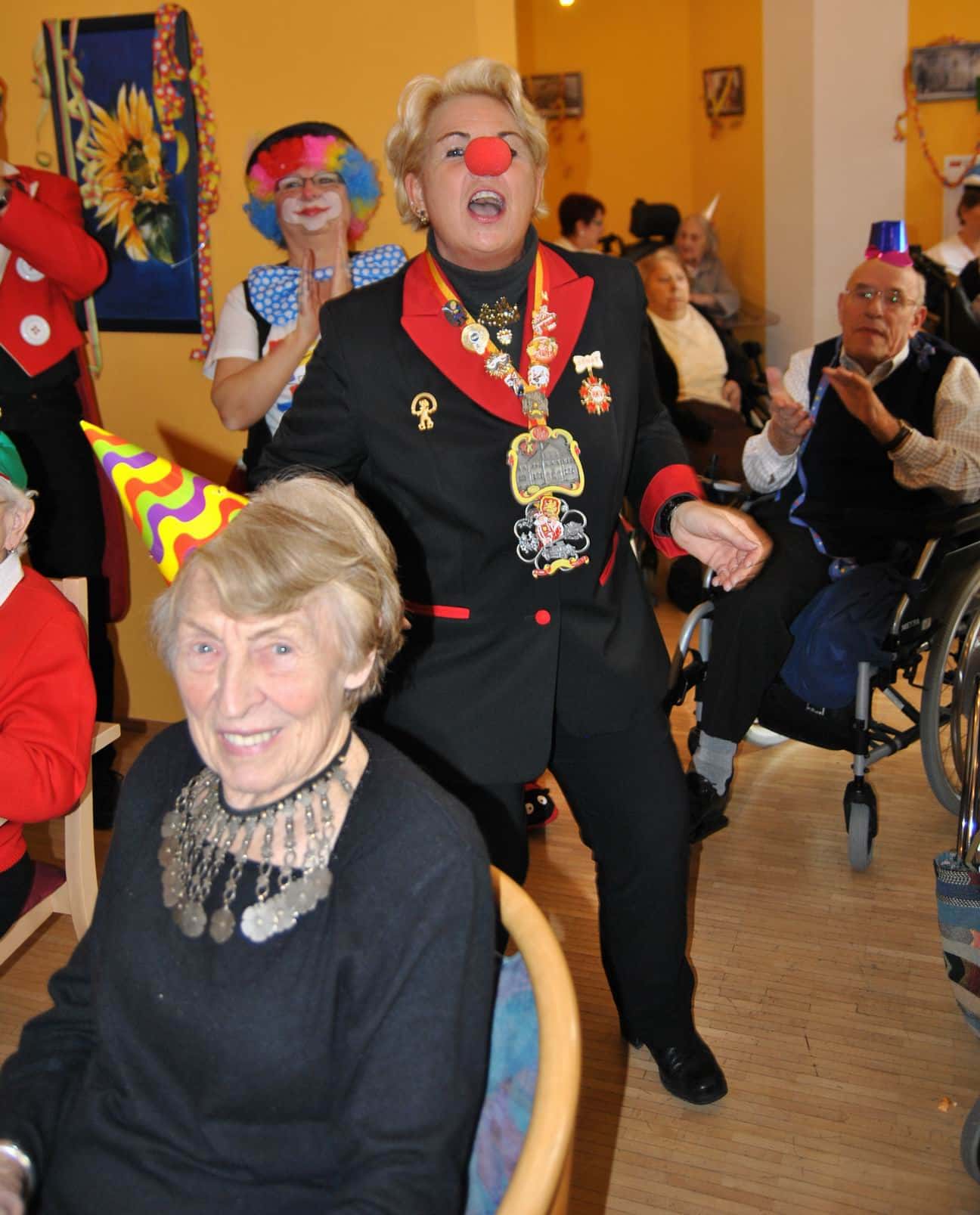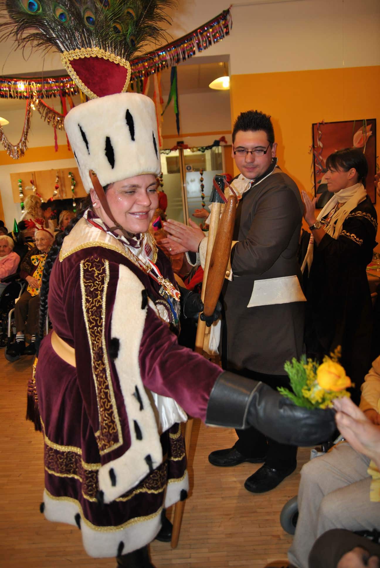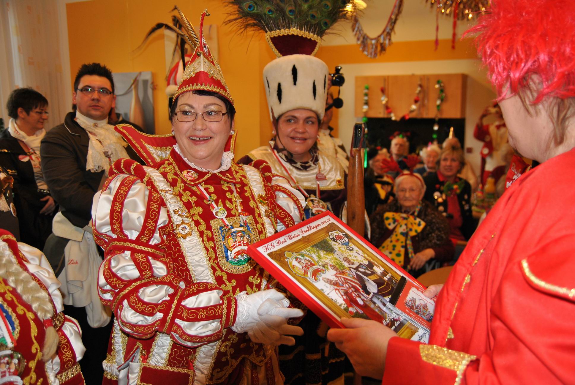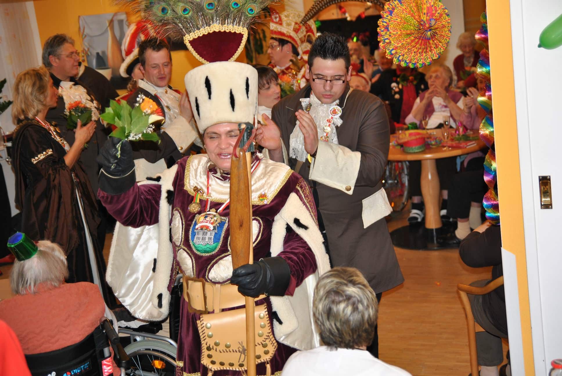 Das Programm wurde u.a. traditionsgemäß von den Karnevalsvereinen RKV 1975 e.V. Ründeroth, mit Prinz Frank II. und Prinzessin Angelika, sowie der KG Rot Weiß Denklingen, mit dem ersten weiblichen Dreigestirn des Vereins, Prinz Anne I., Jungfrau Moni und Bauer Ela, gestaltet, die es sich trotz eisglatten Straßen nicht von ihren Besuchen abschrecken ließen. Beide Vereine zogen mit Ihren Tollitäten sowie ihrem Hofstaat ins Seniorenheim ein, nur die Kindertanzgruppe der Denklinger Karnevalisten, musste dem Wetter Tribut zollen und blieb leider zu Hause. Mit ihren farbenprächtigen Kostümen, guter Laune und schwungvoller Musik versetzten sie die Bewohner in Karnevalshochstimmung und luden zum Mitsingen und Schunkeln ein.