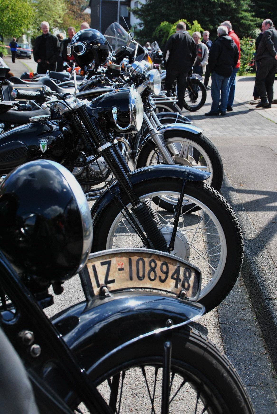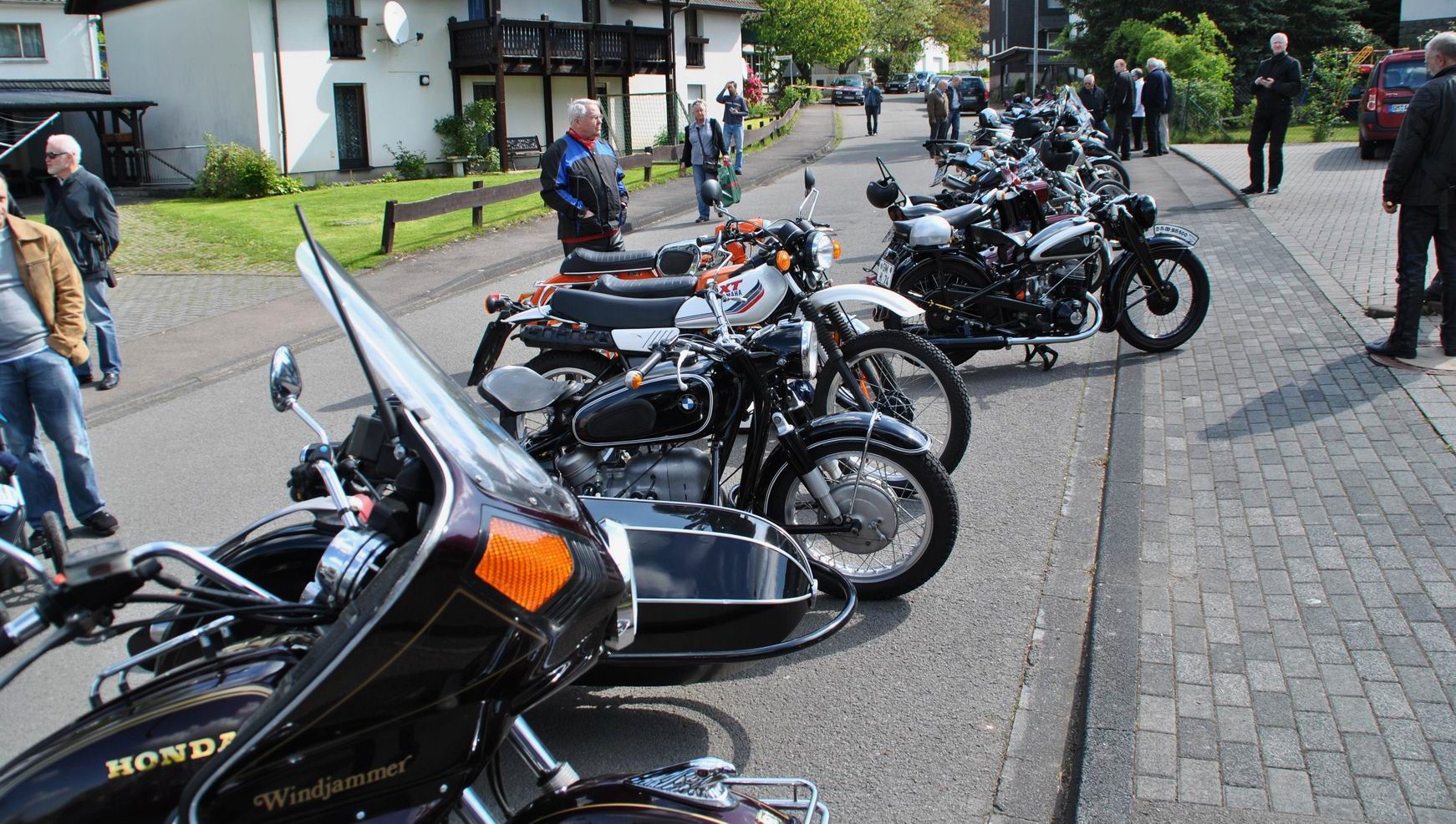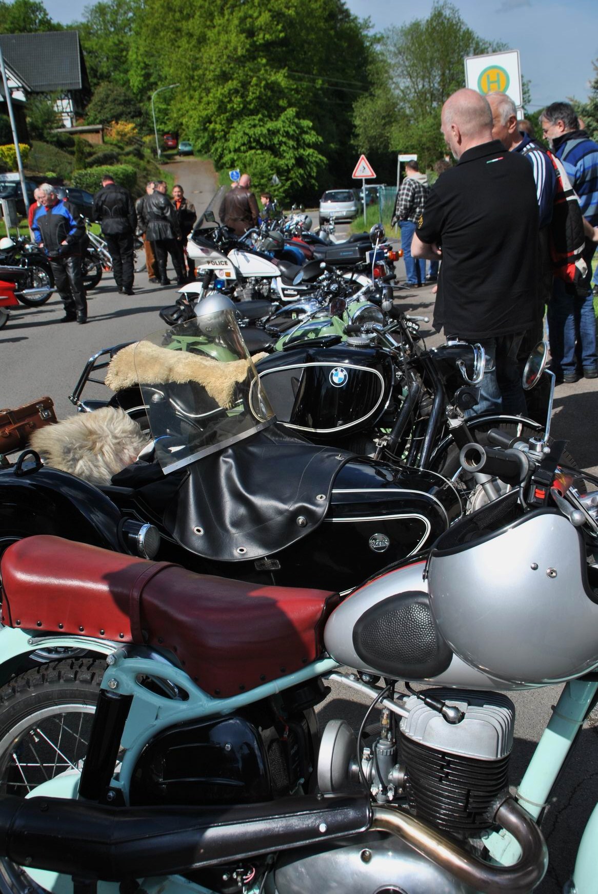 Unter anderem; Kreidler Florett, etliche alte BMW, Harley Davidson Gold Wing, eine Original Kawasaki „Police 1000“ aus Amerika eingeführt und auch mehrere „Reginas“ hatten sich eingefunden. bei dem Namen Regina gehen vielen älteren Motorradfreunden das Herz auf, denn Horex, das war mal eine sehr beliebte Marke. Zu sehen waren aber auch neuere Maschinen, mit denen etliche Zuschauer zur Parade kamen.