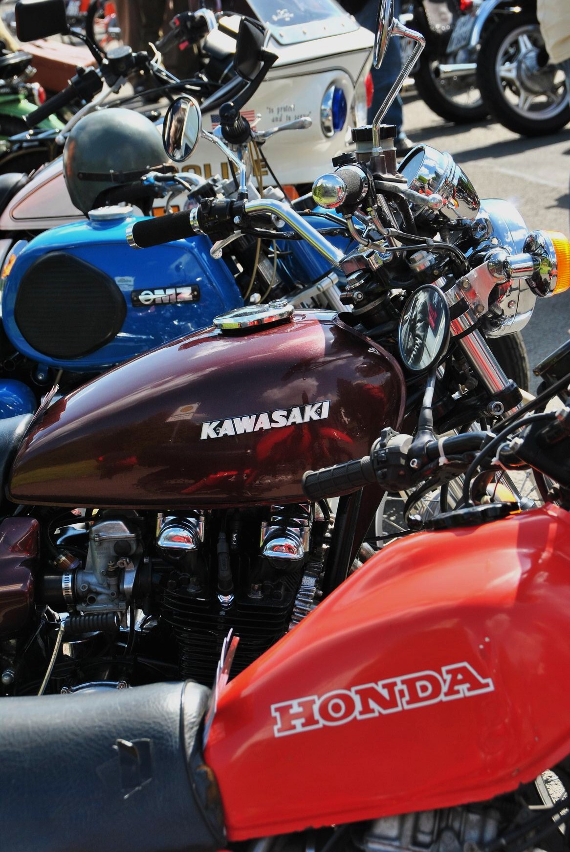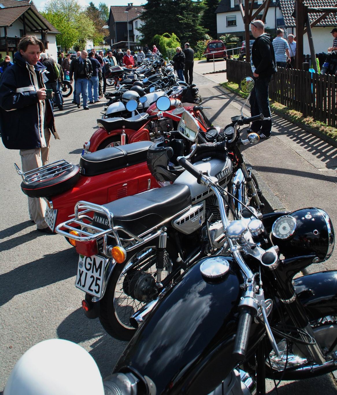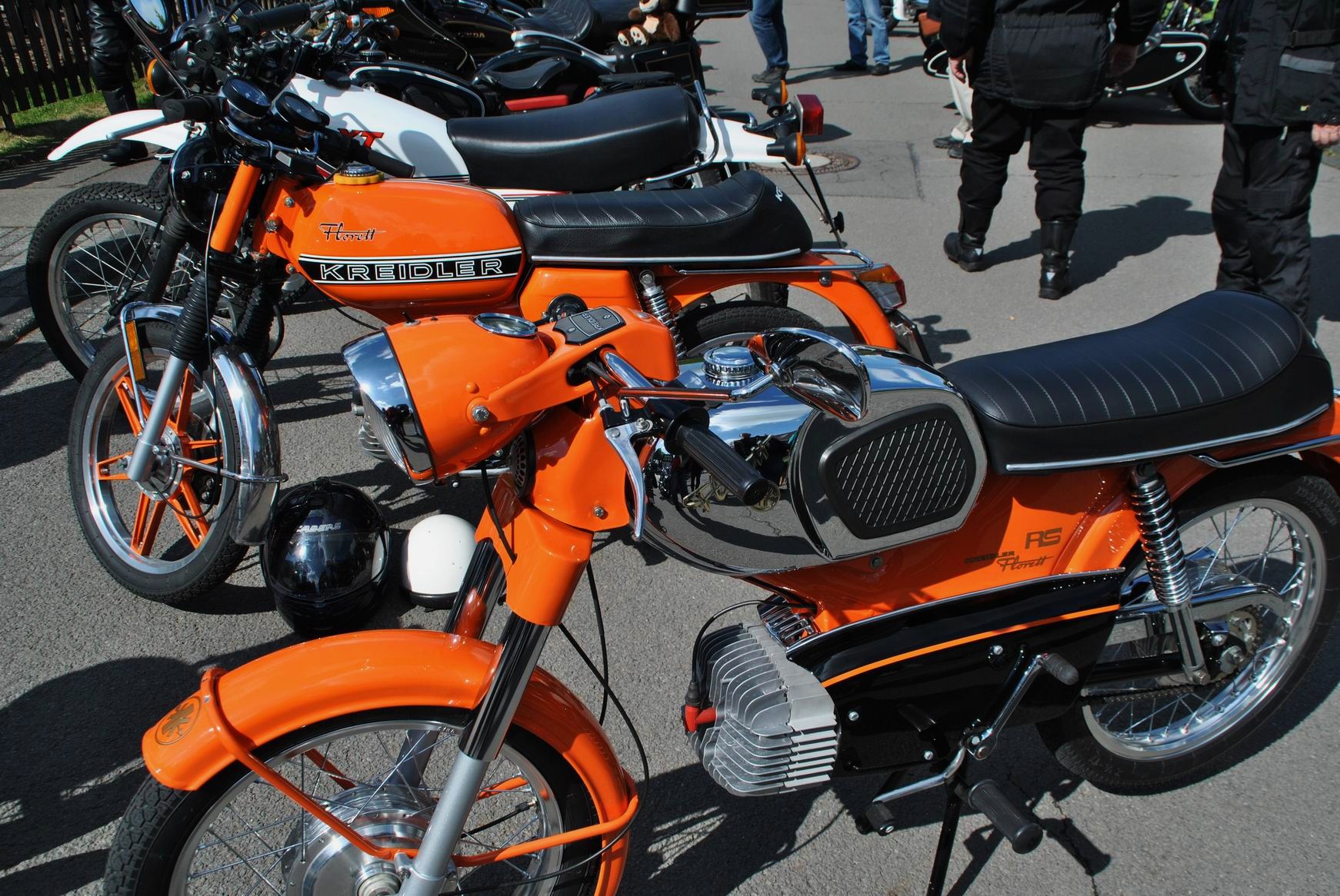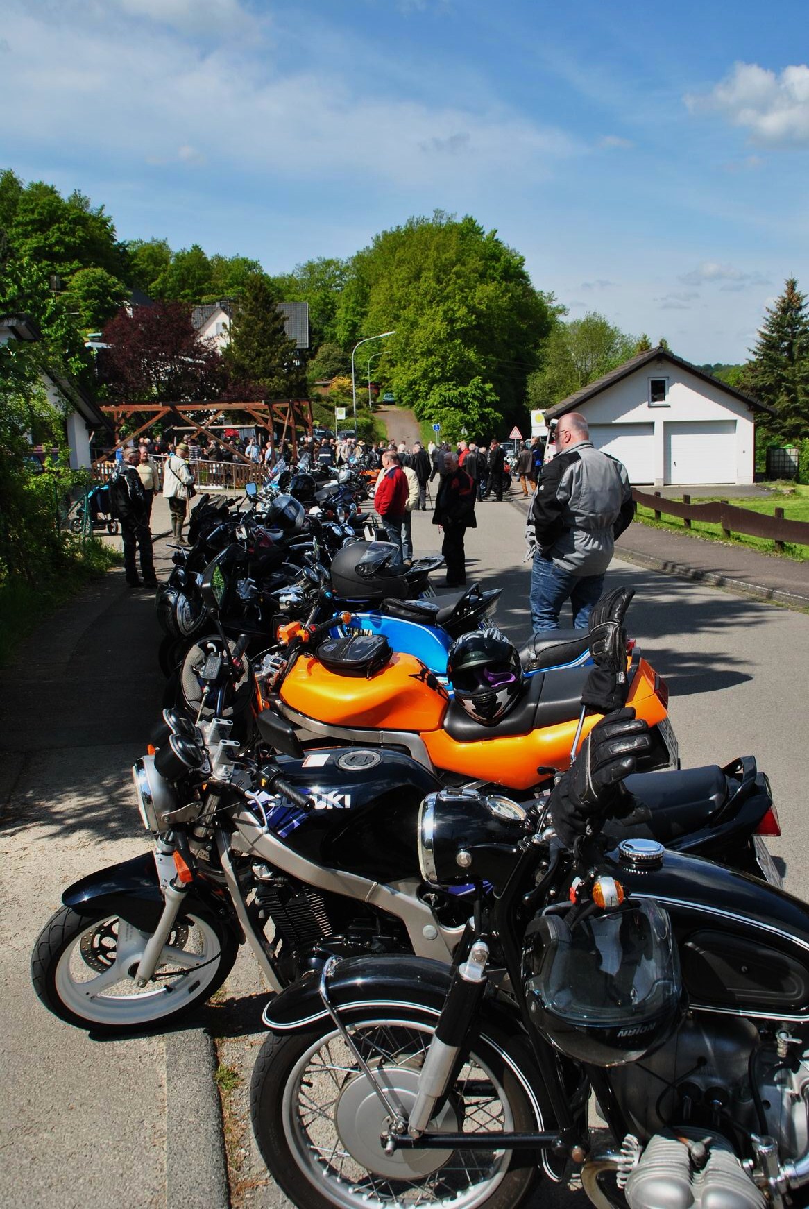 Unter anderem; Kreidler Florett, etliche alte BMW, Harley Davidson Gold Wing, eine Original Kawasaki „Police 1000“ aus Amerika eingeführt und auch mehrere „Reginas“ hatten sich eingefunden. bei dem Namen Regina gehen vielen älteren Motorradfreunden das Herz auf, denn Horex, das war mal eine sehr beliebte Marke. Zu sehen waren aber auch neuere Maschinen, mit denen etliche Zuschauer zur Parade kamen.