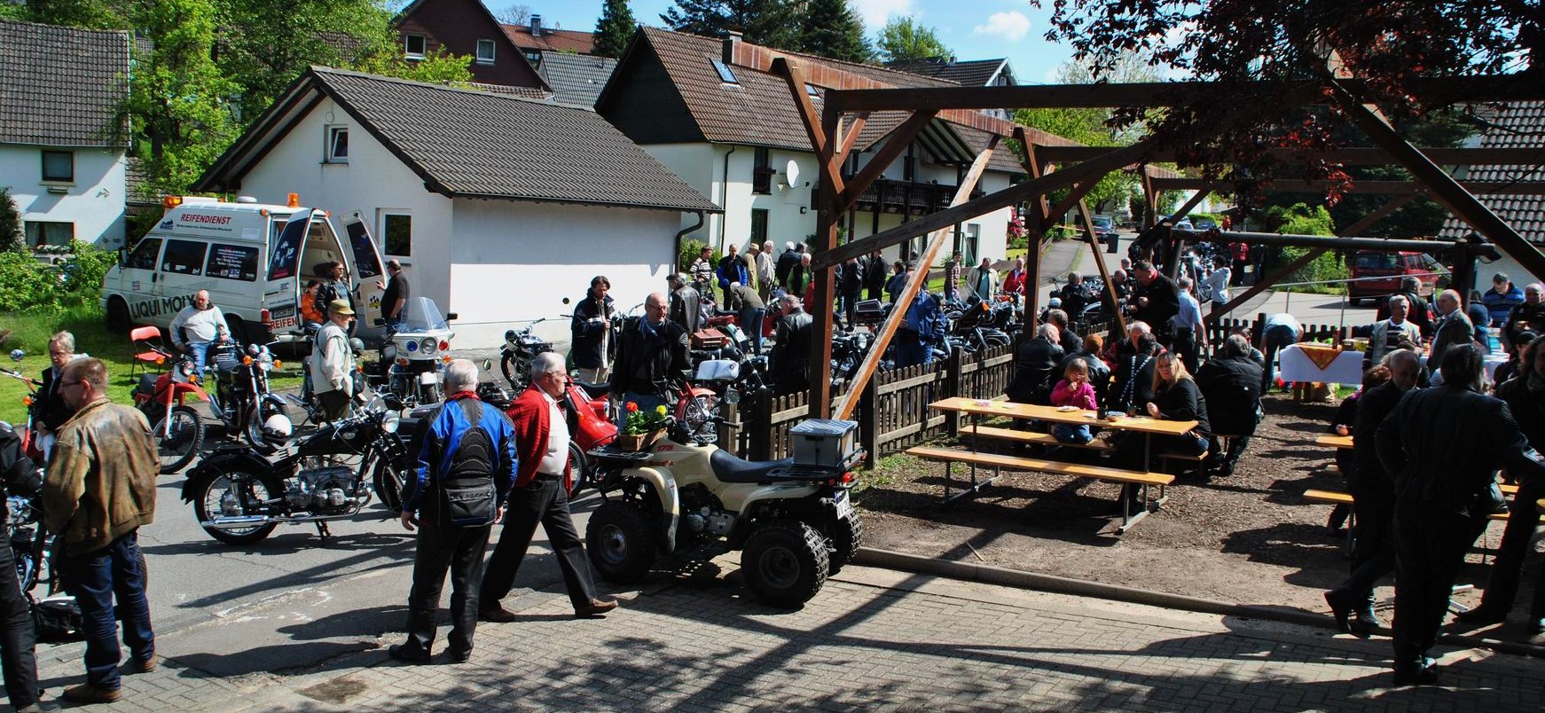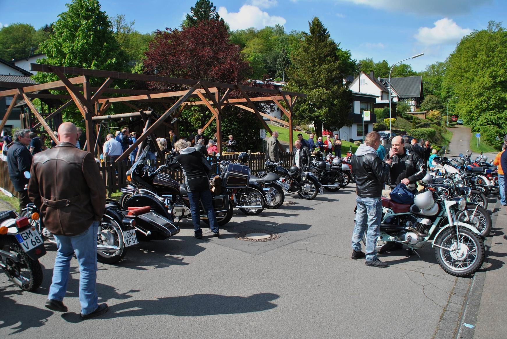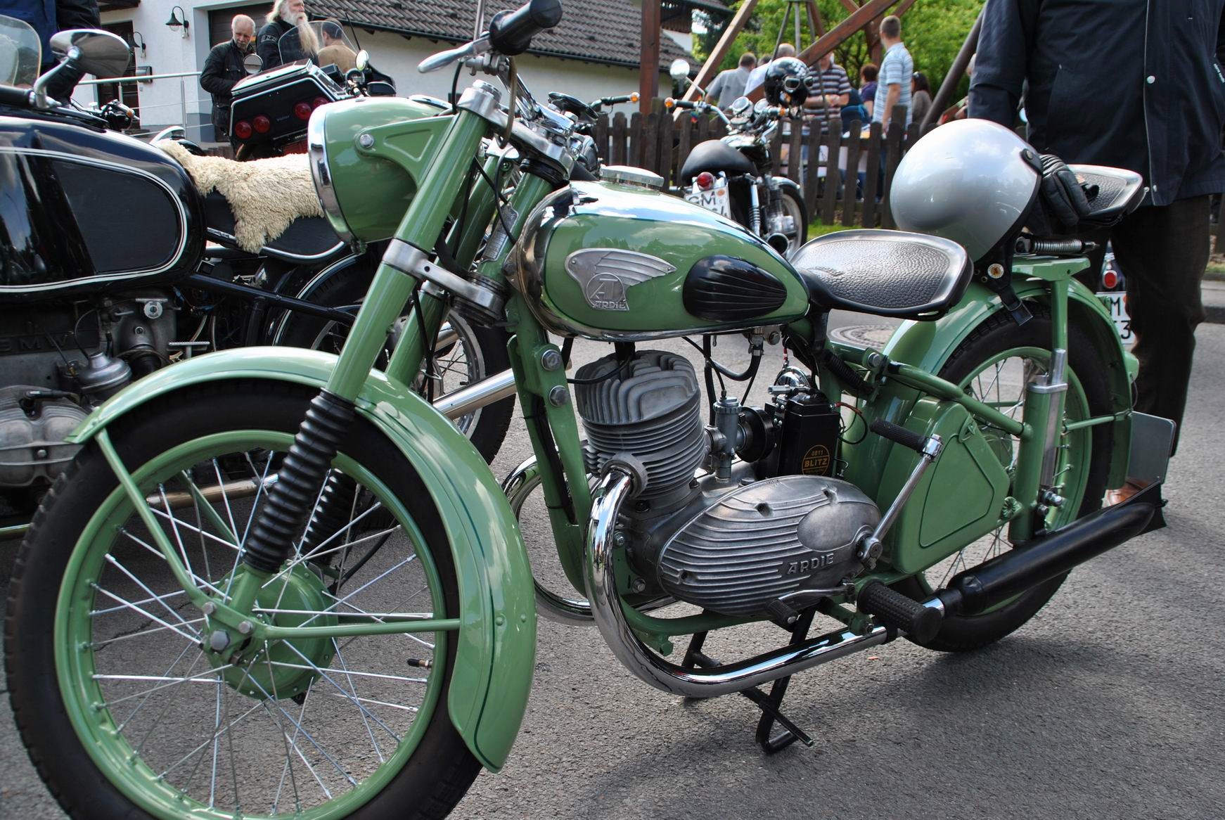 Zum wiederholten male trafen sich dort Enthusiasten von Motorradveteranen um diese zu präsentieren. Und bei sogenannten „Kaiserwetter“ liesen es sich viele Motoradfreunde am Dorfgemeinschaftshaus in Fachgespräche ein, fachsimpelten über das Alter mancher Maschinen und eine konnte man sogar gleich mitnehmen, wenn man das nötige „Kleingeld“ dabei hatte.