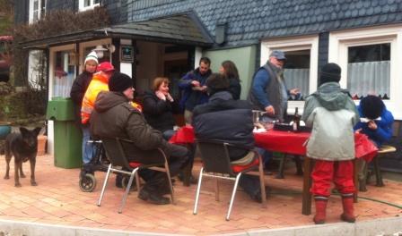 Es ist doch erstaunlich, wie viele lieber das Fenster aufmachen, um ihren Müll zu entsorgen, anstatt ihn mit nach Hause zu nehmen und dann in den Mülleimer zu werfen. Nach etwa zwei Stunden eifrigen Müllsammelns gab es leckeren Glühwein zum Aufwärmen, und eine deftige Suppe war auch zubereitet worden. Man saß noch einen Moment zusammen und hoffte, dass es dieses Mal etwas länger dauern würde, bis der erste Fahrer zwischen Vollmerhausen und Hardt-Hanfgarten wieder sein Fenster zur Müllentsorgung öffnet…