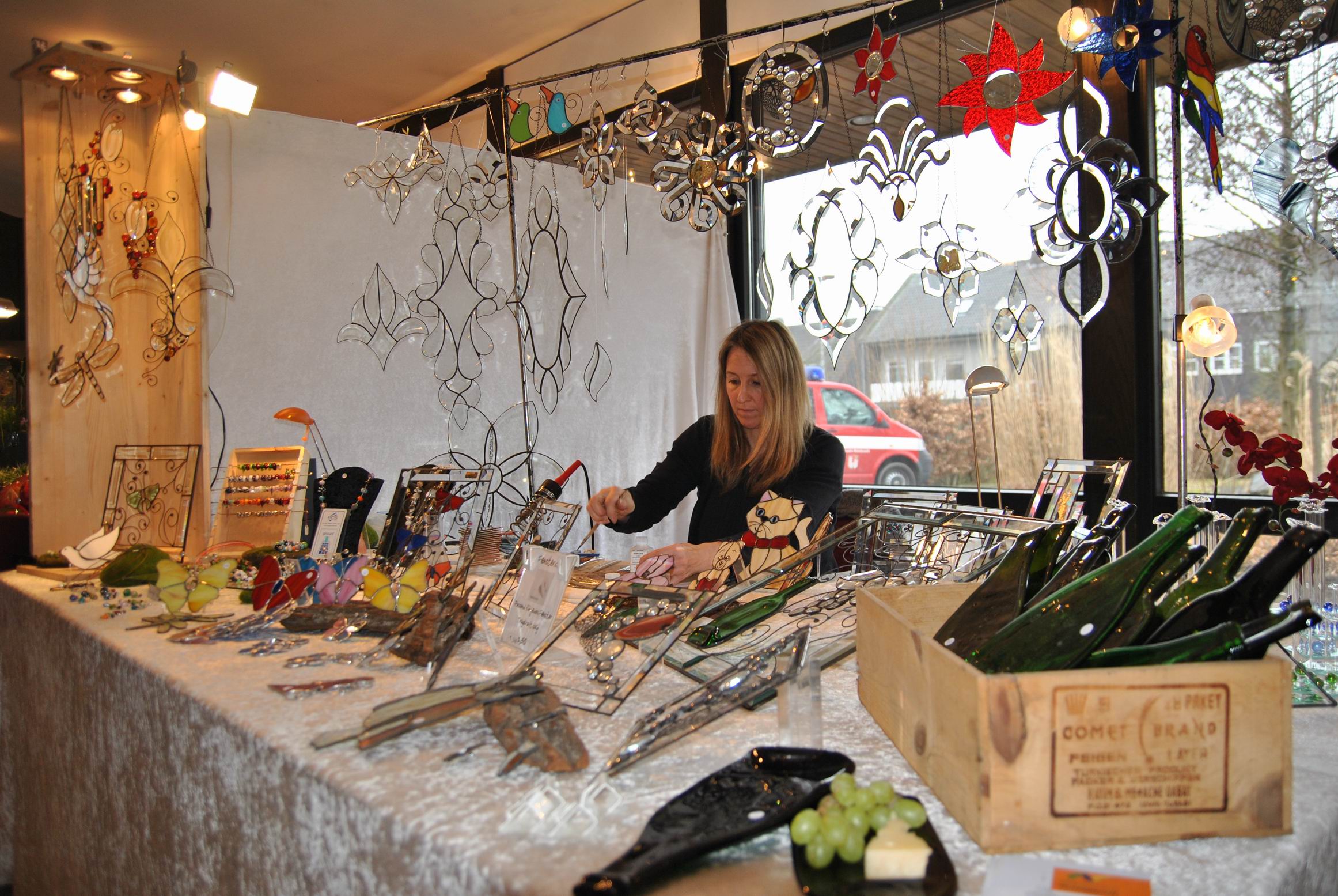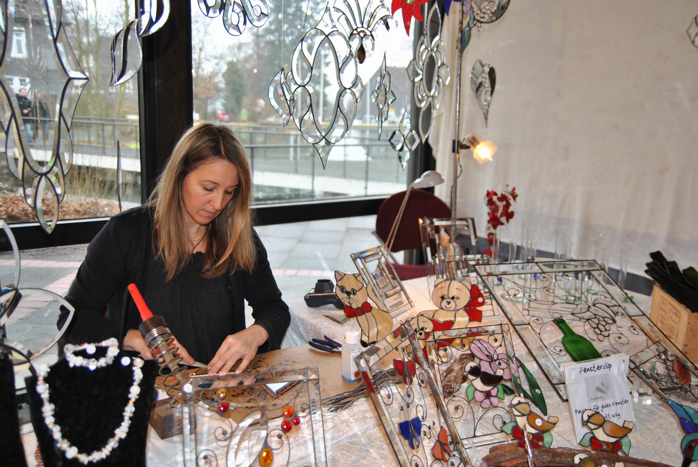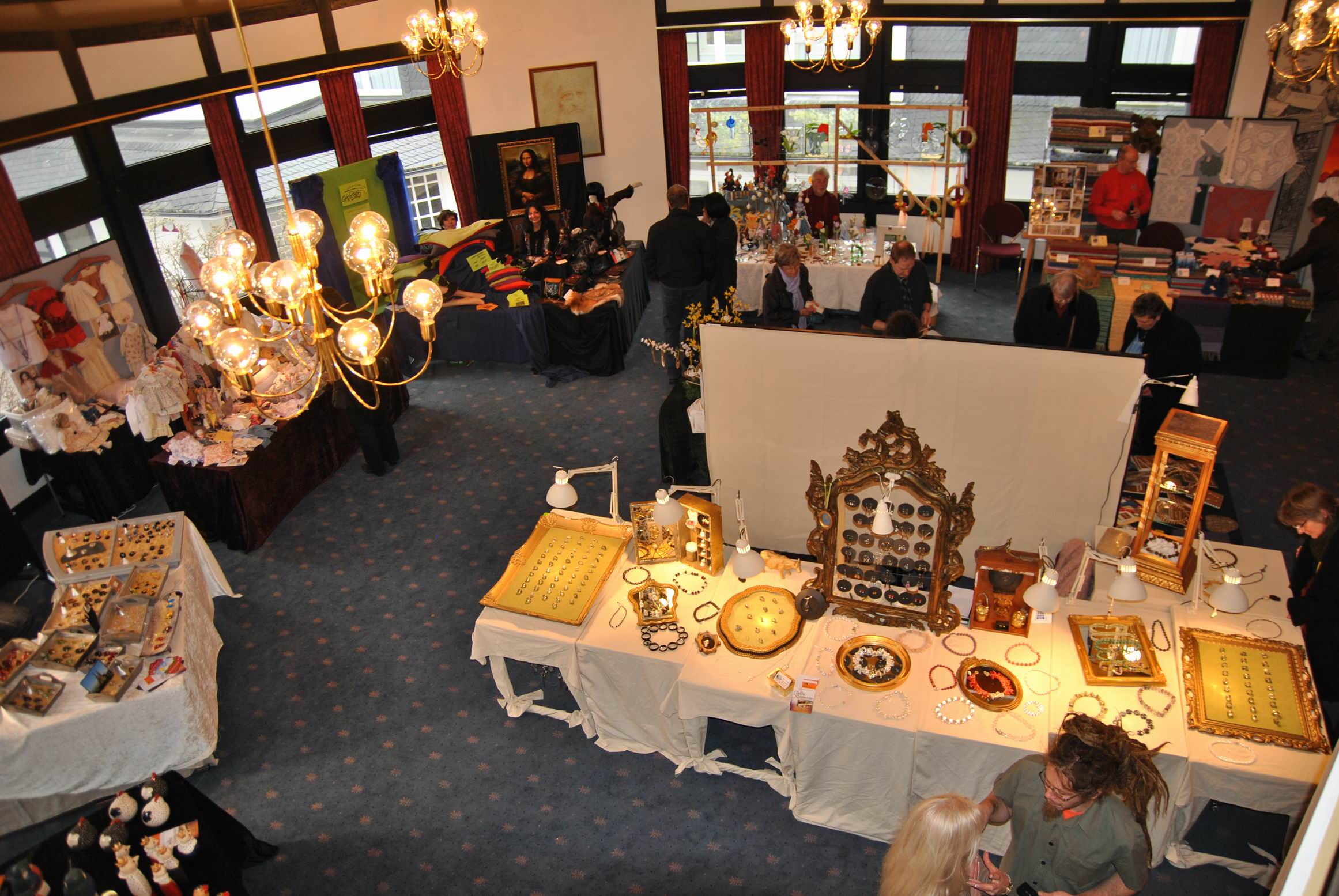 Ob selbstgemachte Seifen z.B. mit Kakao, Vanille, oder Lavendel, Wunderschöne Ölmalerei, Filzarbeiten, Teddis, Puppen, Schmuck oder Dekoration mit echten, aber auch künstlichen Blumen oder Glaskunst und vieles weiteres waren ausgestellt und konnten käuflich erworben werden.