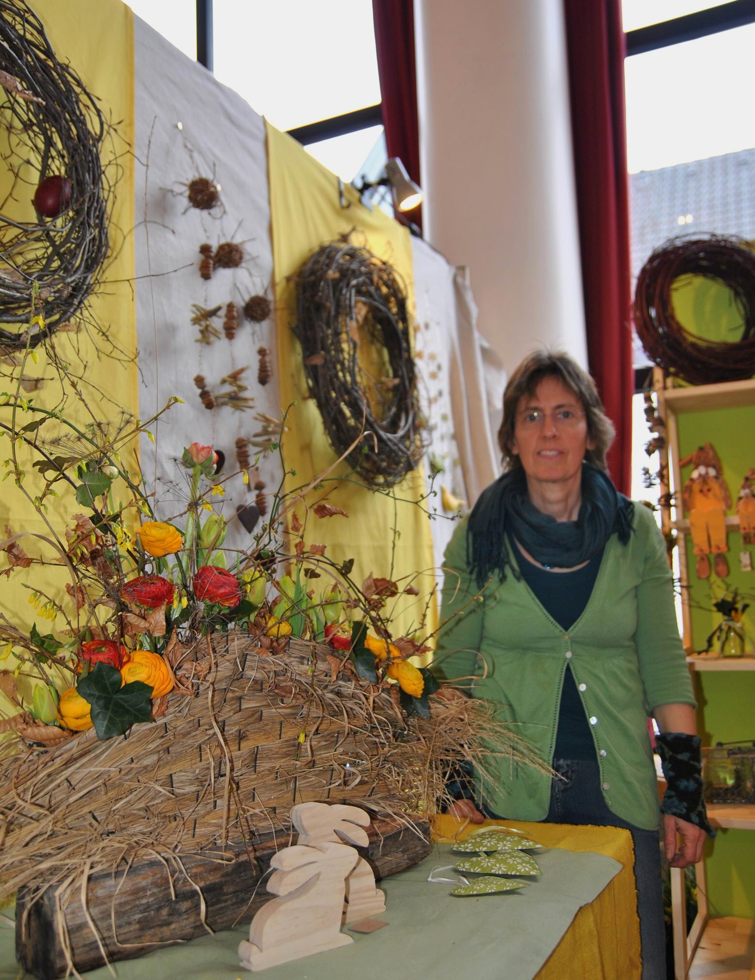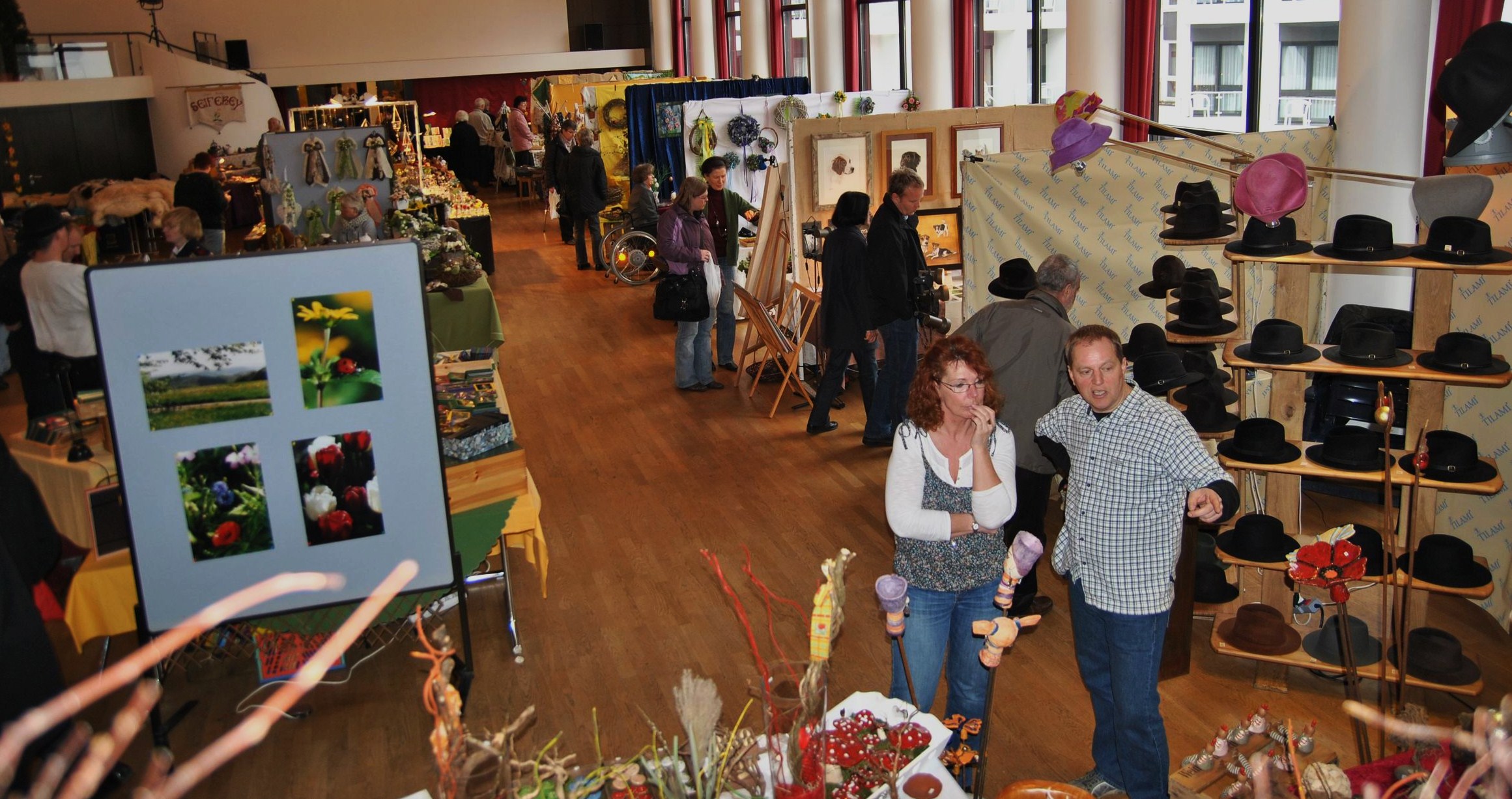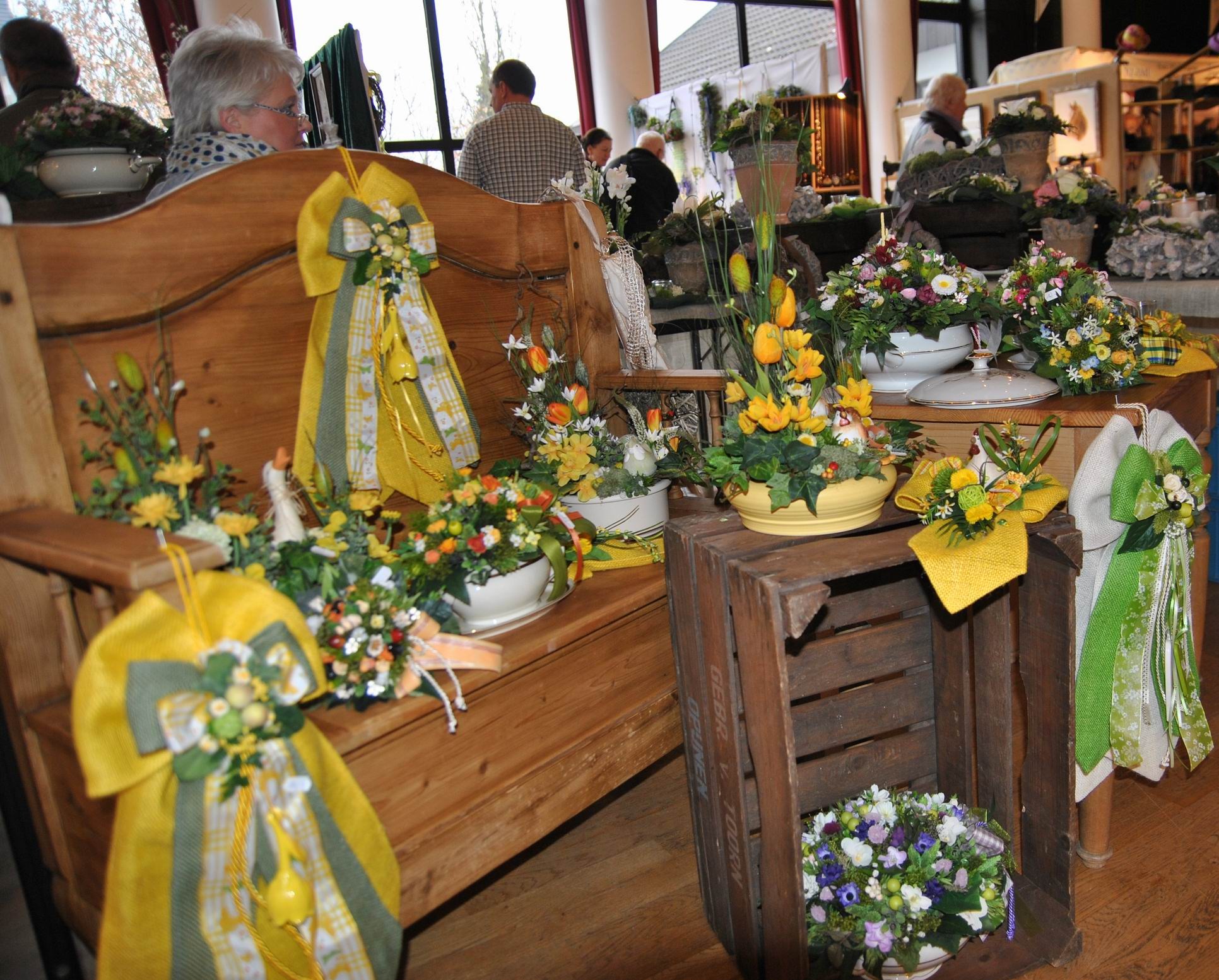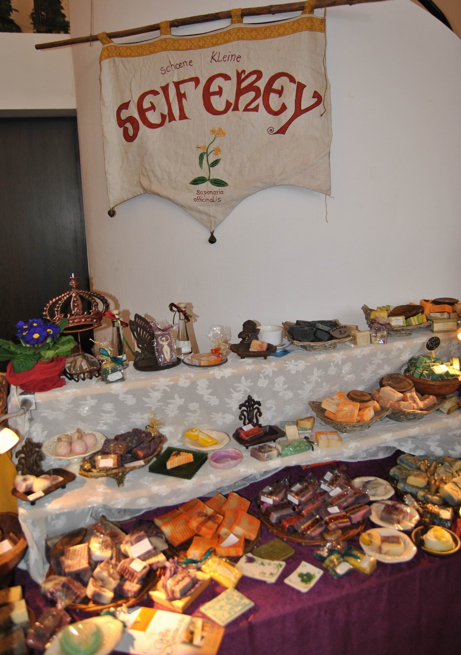 Ob selbstgemachte Seifen z.B. mit Kakao, Vanille, oder Lavendel, Wunderschöne Ölmalerei, Filzarbeiten, Teddis, Puppen, Schmuck oder Dekoration mit echten, aber auch künstlichen Blumen oder Glaskunst und vieles weiteres waren ausgestellt und konnten käuflich erworben werden.