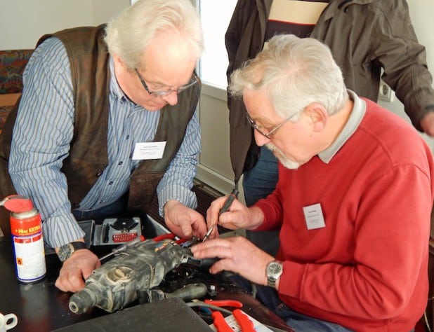 Doch diejenigen, die sich um die Reparaturen verschiedenster Gegenstände kümmern, geben sich größte Mühe. „Manchmal muss man allerdings leider auch kapitulieren“, sagt Hans Bornwaßer, als er einer Besucherin ihren defekten Wasserkocher wieder zurückgibt. Auch am Fahrrad von Peter Meeßen beißt sich der gelernte Kfz-Mechaniker Michael Bonrath die Zähne aus. „Die Gangschaltung ist defekt, das ist immer eine komplizierte Angelegenheit. Damit muss ich in die Fachwerkstatt“, berichtet Meeßen – auch eine Erkenntnis.