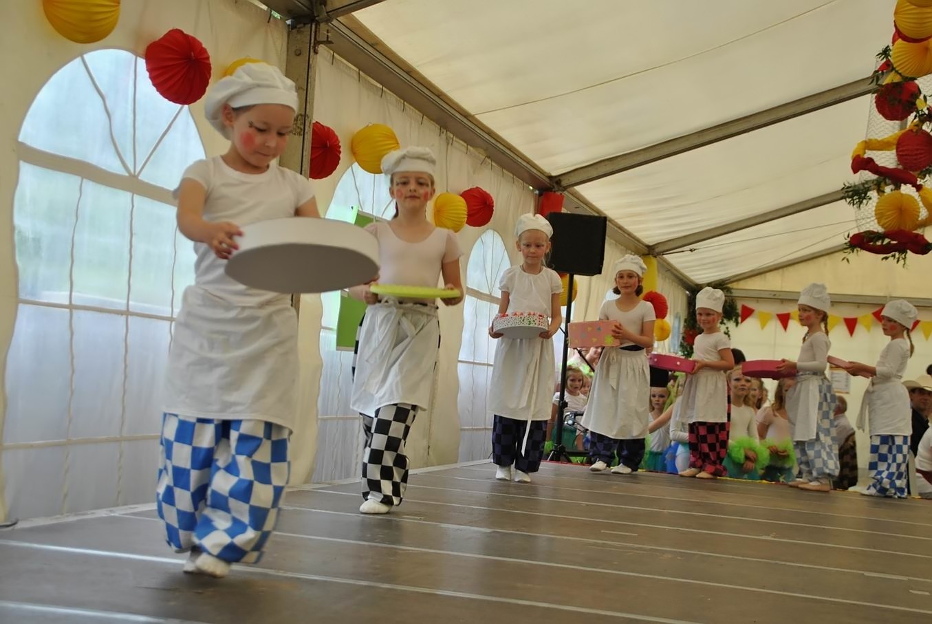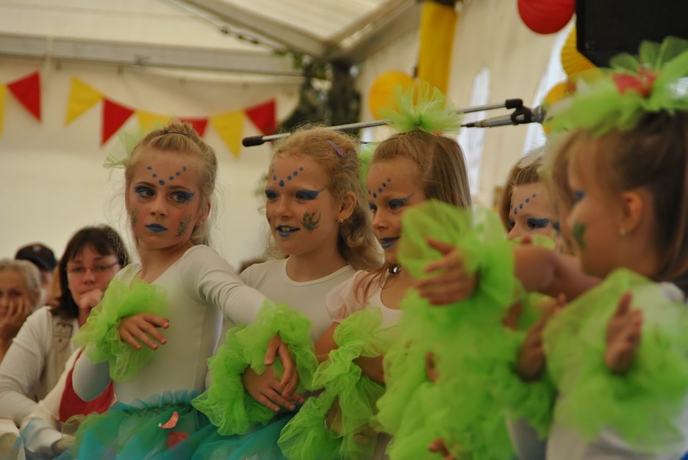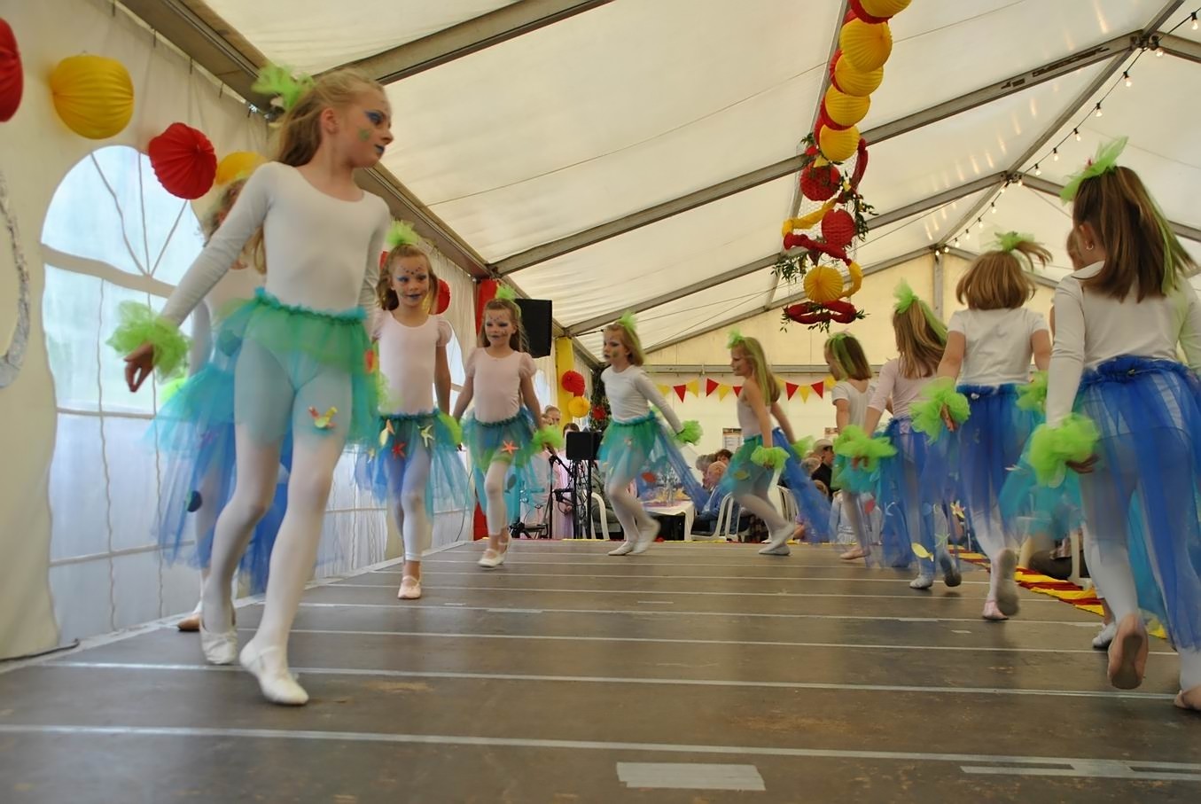Zum bunten Programm des Tages gehörten unter anderem eigens eingeübte Sketche, Bauchredner Hr. Kerscher und seine Puppe Dolly, der Harscheider Chor und die vielumjubelten Auftritte der Ballett- und Tanzschule Nümbrecht.