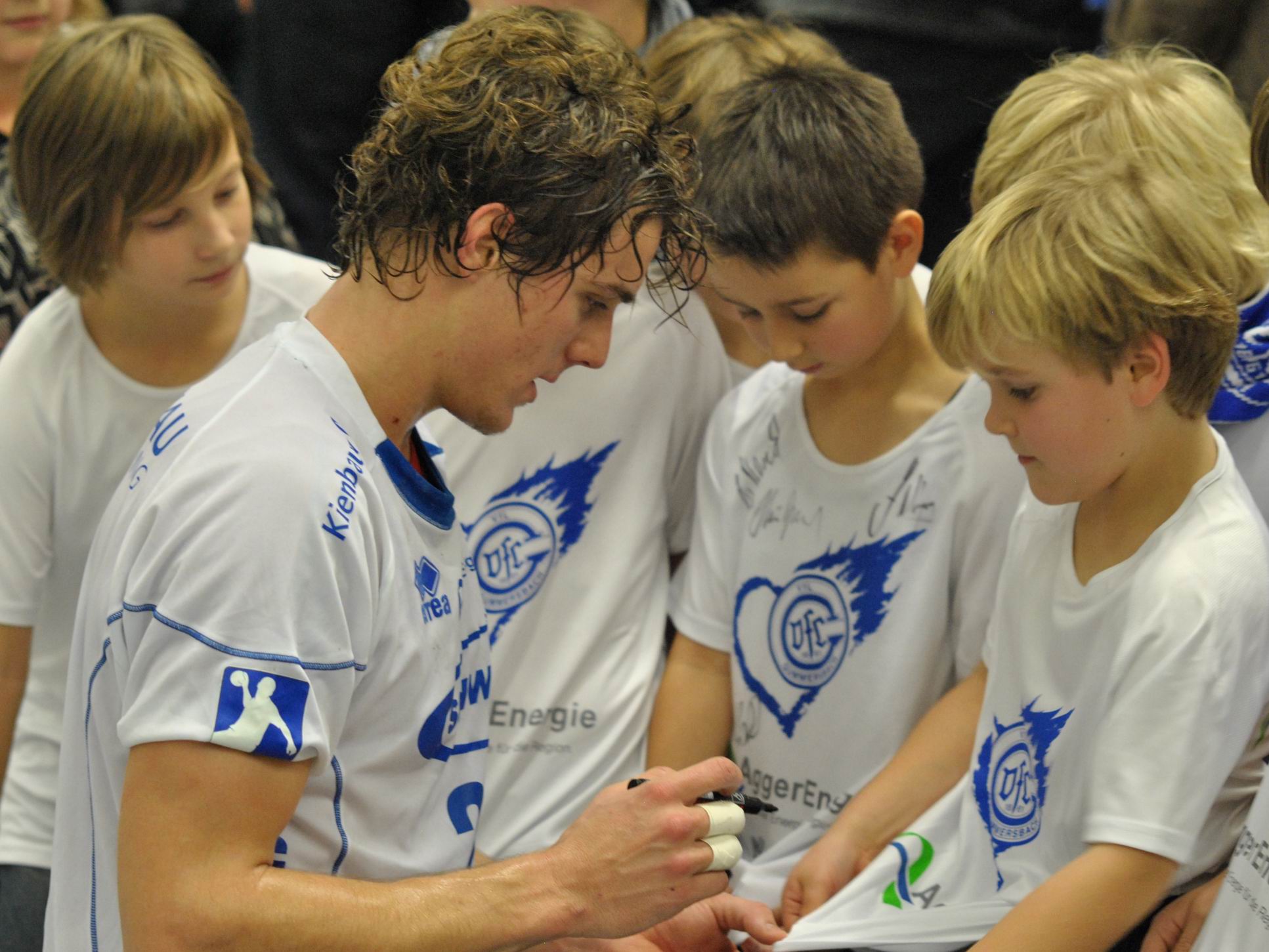 Als die Hannoveraner dann 15 Sekunden vor Schluss wieder mit 33:32 in Führung ging, dachten viele in der Halle schon an die verloren Punkte. Aber ein wieder mal glänzend aufgelegter Kentin Mahe rettete dem VFL mit einem wuchtigen Hüftwurf durch die Abwehrmauer, eine Sekunde vor Spielende doch noch einen Punkt.