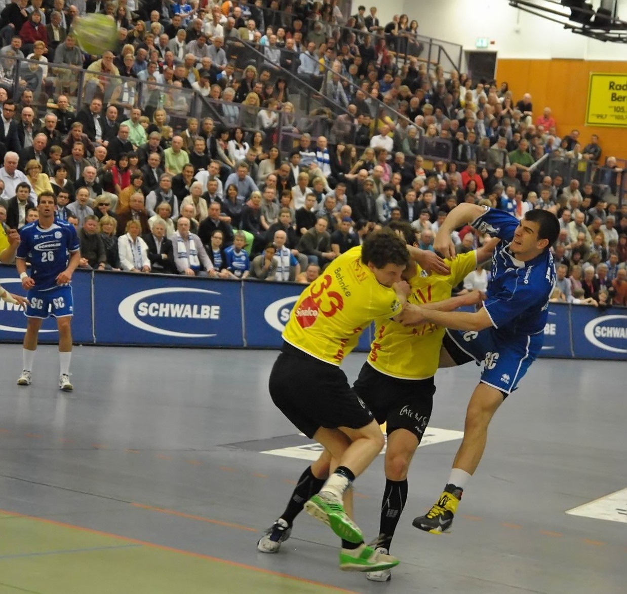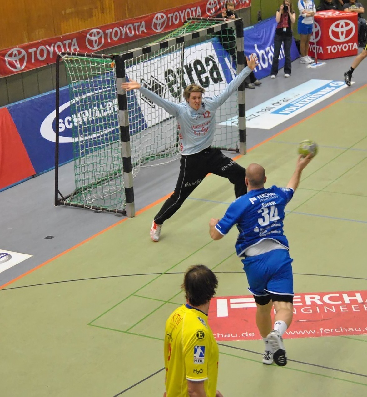 In den letzten 15 Minuten war dann bei den Blau – Weißen dann auch ein wenig die Luft raus.Und als Kurz vor Schluß endlich auch der Neuzugang Ivan Dimitrijevic zu seinem ersten Einsatz in der HBL. Nur der Pfosten verhinderte, das er sich auch schon in der Torschützenliste eintragen konnte.