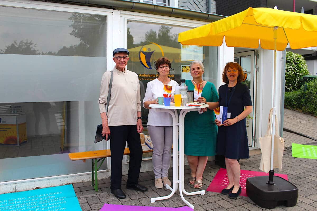 Bergneustadt – Die Woche der offenen Tür des Ökumenischen Hospizdienst Gummersbach e.V. war ein voller Erfolg. Von Montag (16. Mai 2022) bis zum heutigen Freitag (20. Mai 2022) fanden über 80 Gespräche statt – teils mit Personen, die auf die Ankündigung gestoßen waren und über mehrere Stunden blieben; teils aber auch mit Personen, die auf dem Weg durch das Bergneustädter Zentrum kurz innehielten, um herauszufinden, was hinter dem aufgebauten Stehtisch, dem Sonnenschirm, den ausgelegten Plakaten und den freundlich auf sie zukommenden Mitarbeitern steckt.