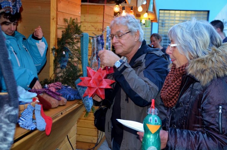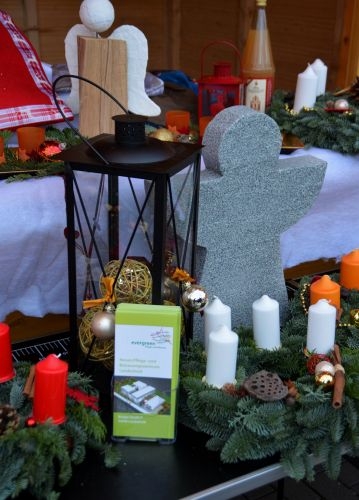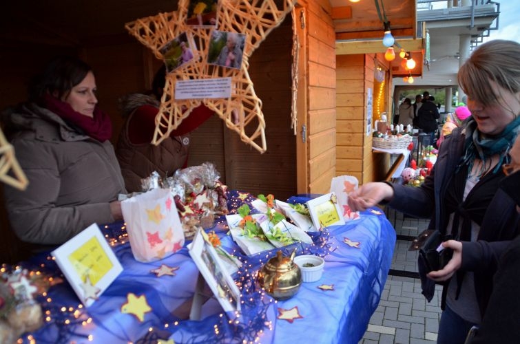 Besonders gab es für die Besucher, am Samstagabend, einen kleinen Martinszug mit Gesang. „Die Mini Voices“ zeigten nicht nur ihre tollen selbstgebastelten Laternen sondern sangen zusammen mit Bewohnern, Mitarbeitern und Besuchern zusammen die altbekannten Martinslieder. Als Dank gab es für die kleinen dann jeweils einen großen Weckmann, den manch einer schon auf dem Gelände verspeiste. In den einzelnen Hütten saßen MitarbeiterInnen aus anderen evergreen Einrichtungen, ob Paderborn mit Weihnachtsdeko und Marmeladen, Landscheid mit Weihnachtsgestecken, die Saalburger verkauften selbstgemachten Likör und Wurst und die Bergneustädter haben in den letzten Wochen zusammen mit ihren Bewohnern die Handarbeiten erstellt.
