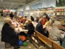 Womit niemand gerechnet hatte: Als die alles entscheidende Kugel gezogen wurde, riefen gleich zwei Senioren des Clubs „BINGO“. Herr Arendt, stellvertretender Geschäftsführer des REWE-Marktes, ergriff das Wort: „Da es nur noch einen Frühstückskorb zu gewinnen gibt, schenken wir einem der beiden Gewinner einen 30 Euro Wertgutschein des REWE-Marktes. Und da hier niemand leer ausgehen soll, bekommt jeder Verlierer von uns eine Packung Toffifee geschenkt.“ Daraufhin applaudierten die Senioren, die sich sichtlich freuten.