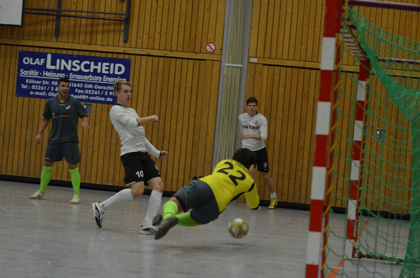 Während Olpe in dem einen Halbfinale mit einem 7:3 gegen Bergneustadt keine Probleme hatte, musste Drabenderhöhe nach einen 2:2 in der regulären Spielzeit in die Verlängerung gehen. Hier gelang dann dem Spieler Stomeo ein genialer „Bandenball“ indem er die Wand als Passgeber nutzte und so seinem Mitspieler Schneider eine Maßvorlage zum 3:2 und so zum „Sudden Death“ gab.