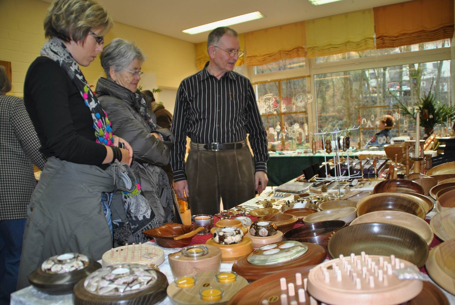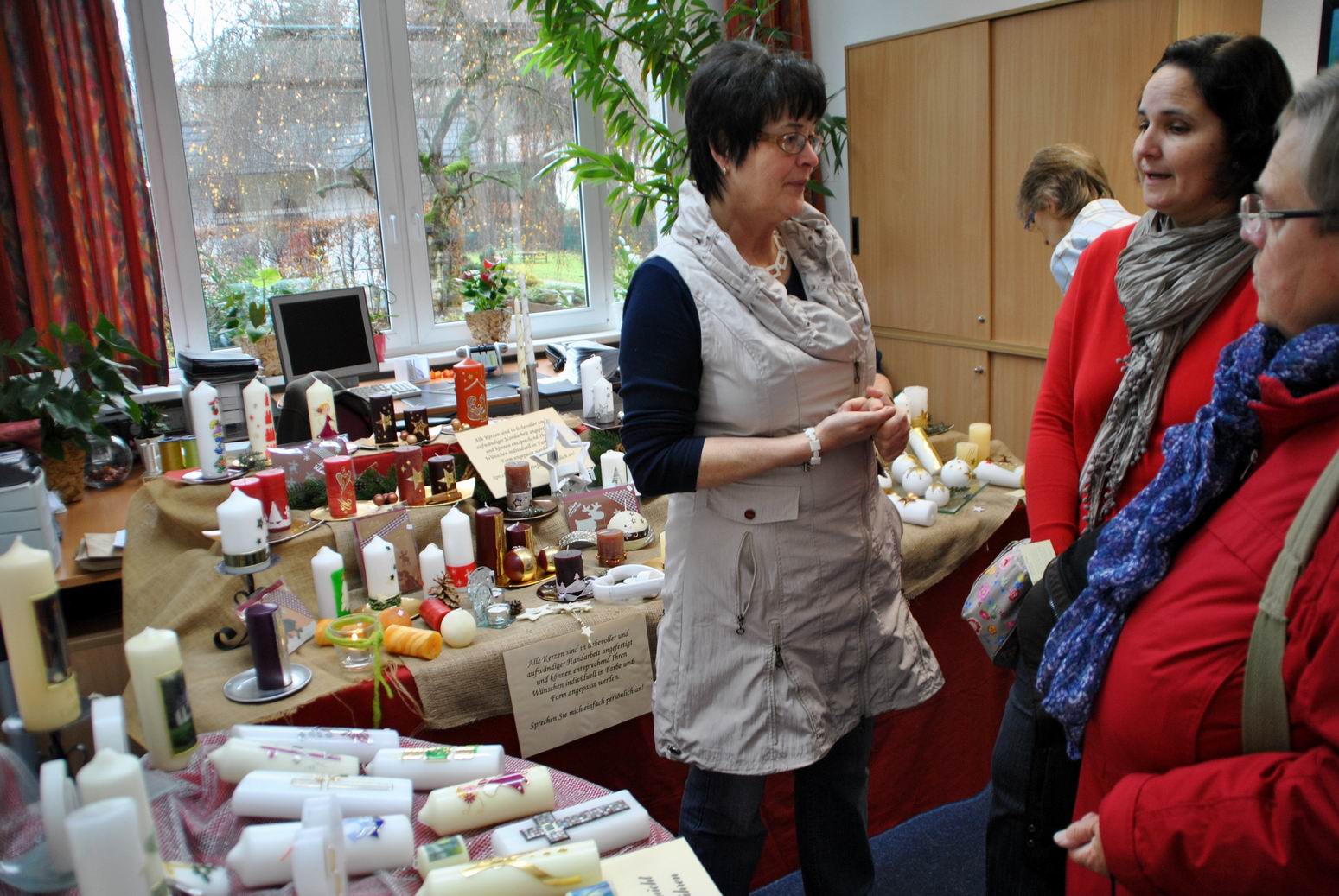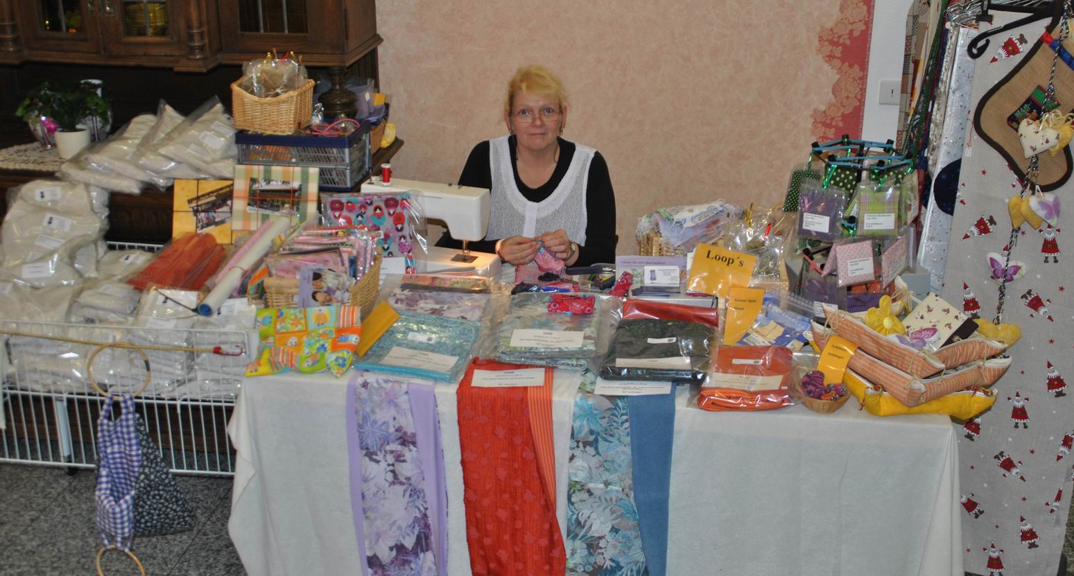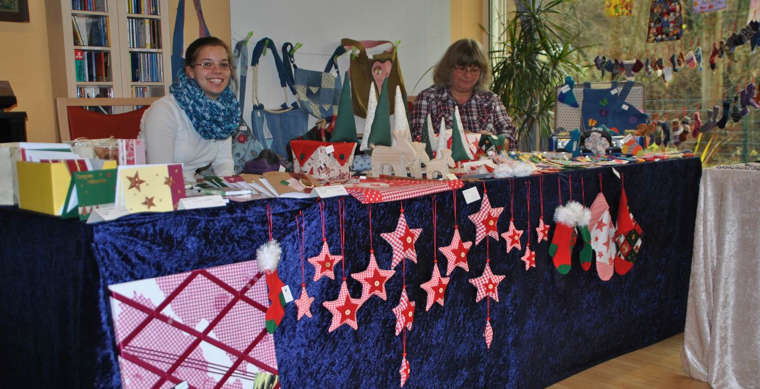 Es wurden z.B. Arbeiten aus Holz, Keramik, Stoff, Filz oder Papier neben Schmuck, Malerei und Handarbeiten ebenso angeboten wie Geschenkverpackungen, Kerzen und Gestecke.
