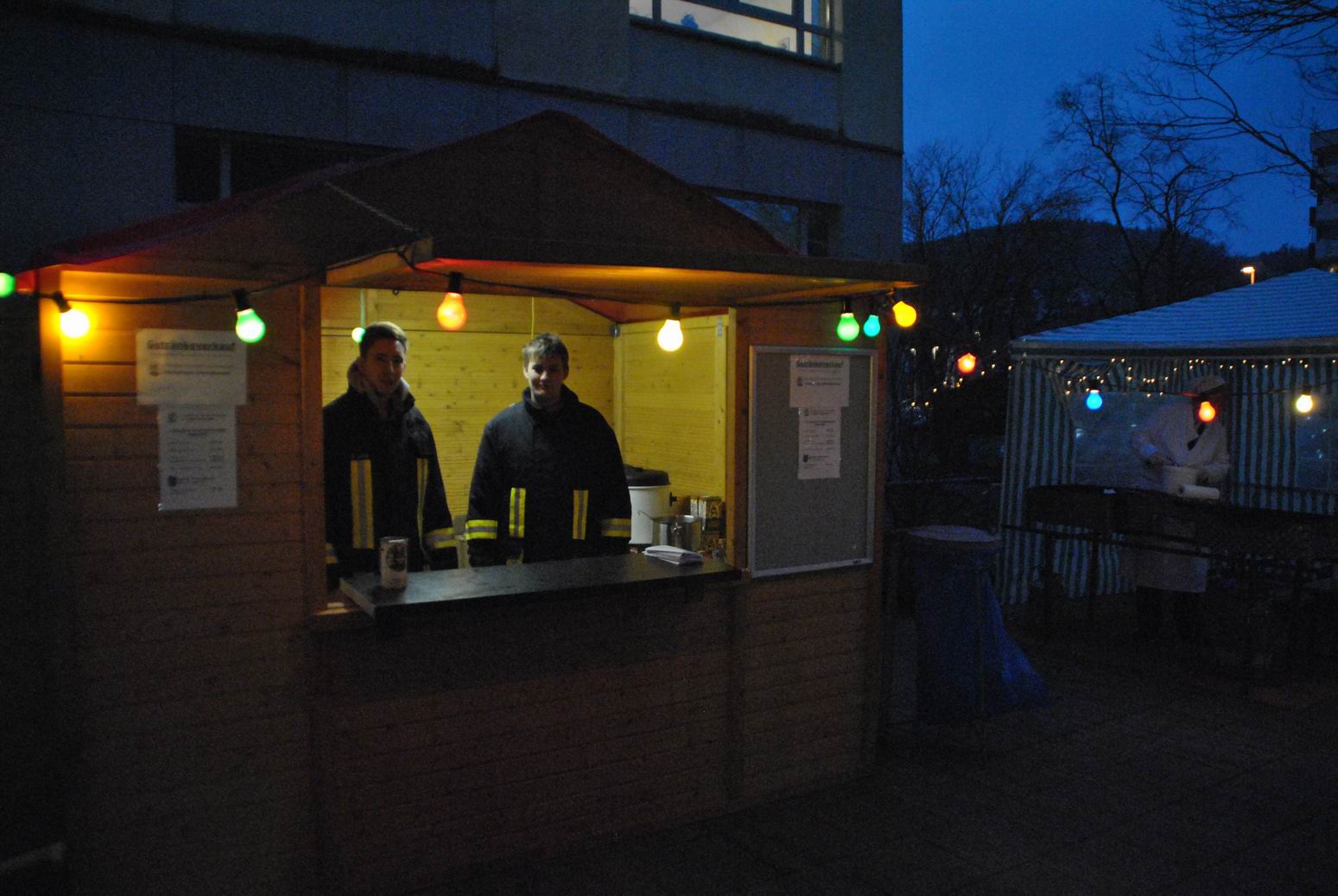Die Feuerwehrjugend und die Aggertaler Schützengilde versorgten die Besucher mit Reibekuchen und Glühwein, und aus der Cafeteria lockte der Duft von Kaffee und frischen Waffeln.