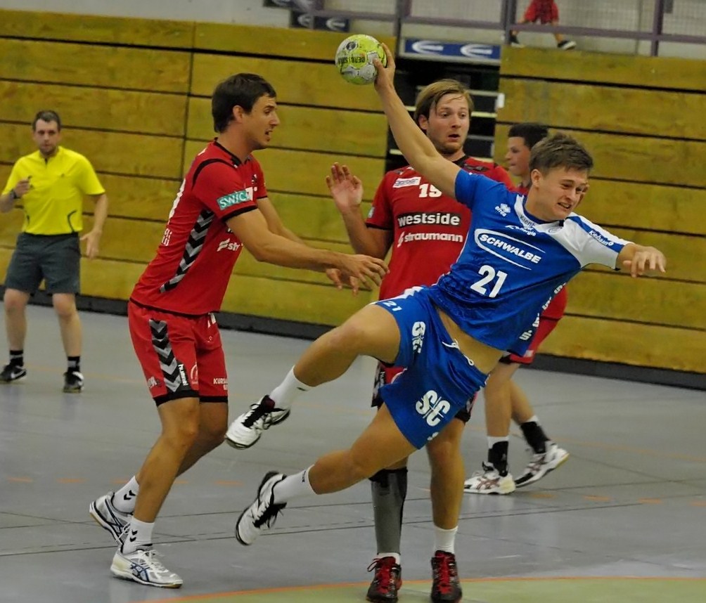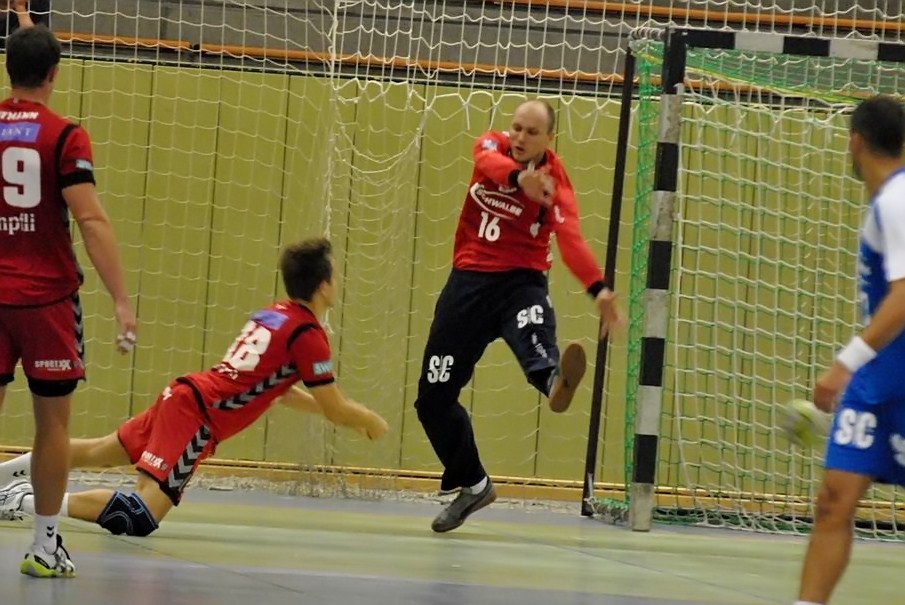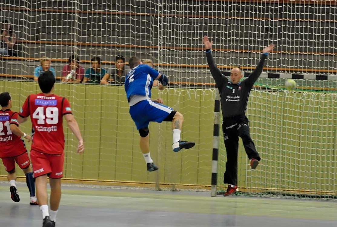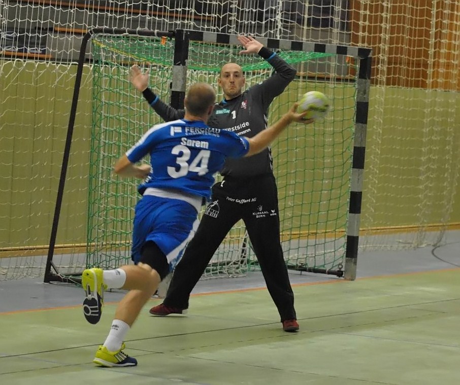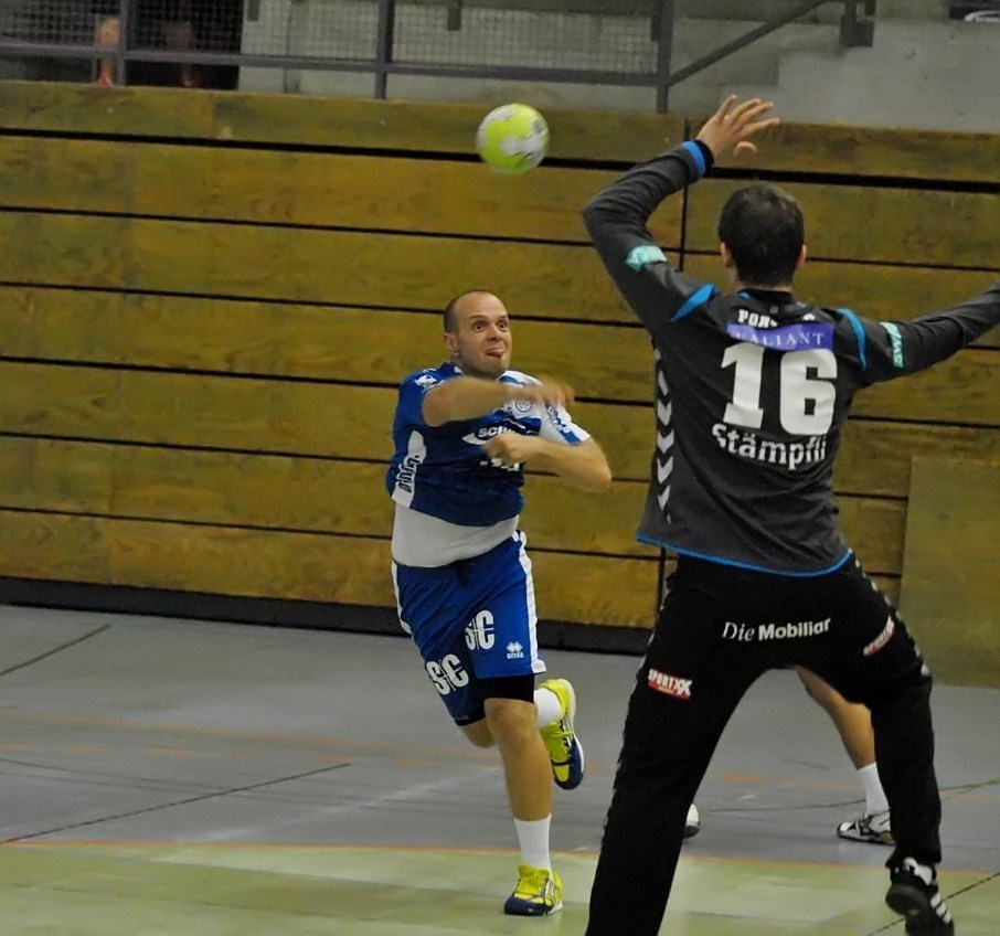 Neuzugang Kreisläufer Kopco kämpfte am Kreis, ebenso wie der A Jugendspieler Heyme und stellten die Berner Abwehr immer wieder vor Probleme.