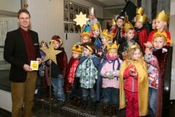 Gummersbach – Rund 20 Kinder und Jugendliche der katholischen Franziskus-Kirchengemeinde brachten jetzt den Segen „Christus mansionem benedicat“ an der Eingangstür des Kreishauses an. Dort wurden sie von Dr. Jorg Nürmberger, Gesundheitsdezernent des Oberbergischen Kreises, begrüßt. „Wir freuen uns sehr über Euren Segen, und unsere Besucher wird es sicher auch freuen, wenn sie diesen am Eingang lesen. Aber auch für die Mitarbeiter der Kreisverwaltung ist der Segenspruch ein ganz wichtiger Bestandteil“, so Nürmberger. Er würdigte das Engagement der Mädchen und Jungen, die für Kinder in Not an den Haustüren Spenden sammeln. „Als Sternsinger der katholischen Kirchengemeinde St. Franziskus seid Ihr ein Teil der weltweit größten Aktion von Kindern für Kinder, und darauf könnt Ihr stolz sein.“