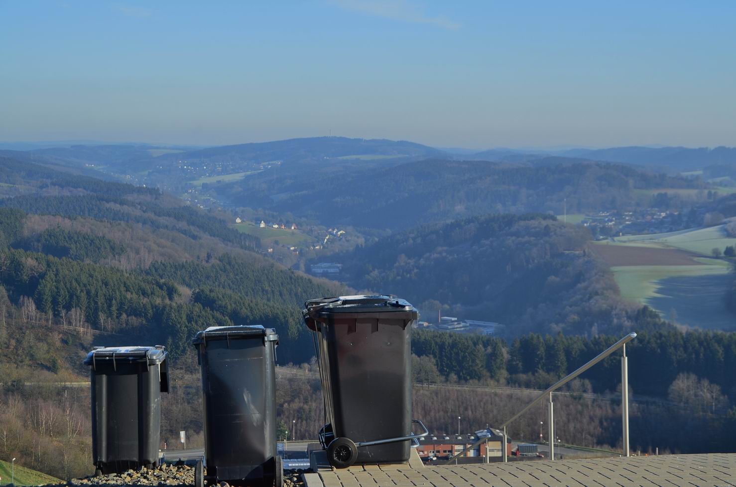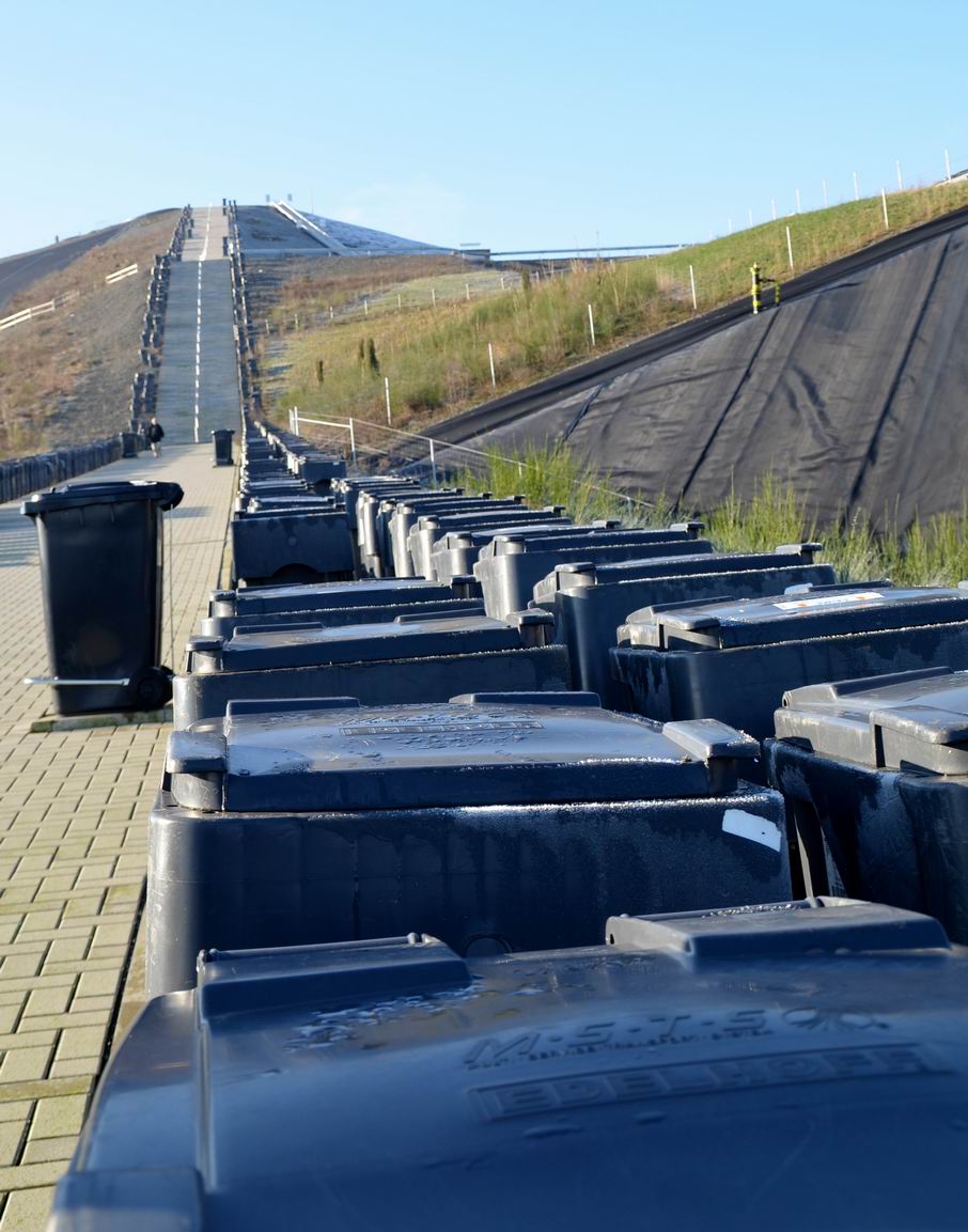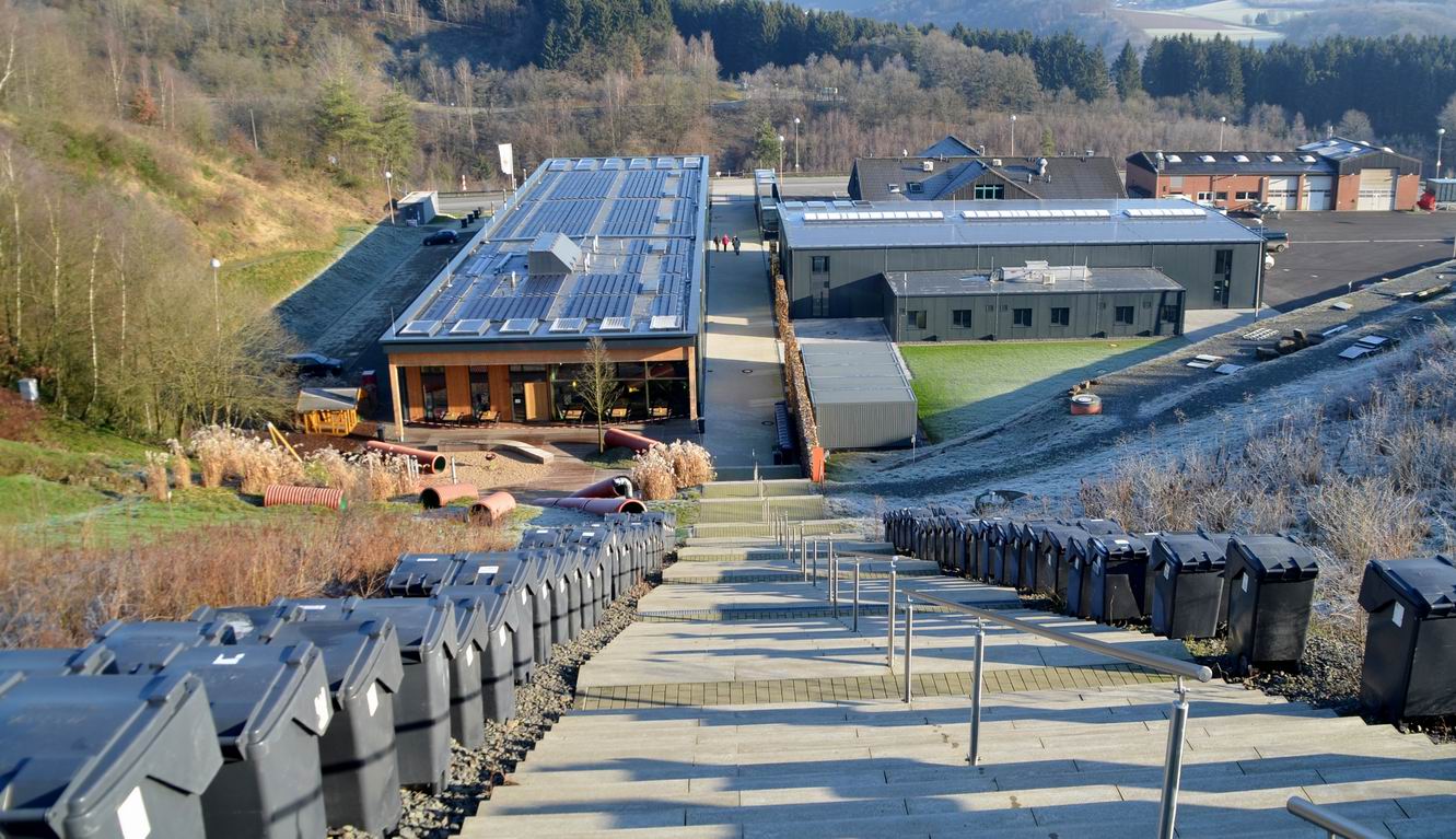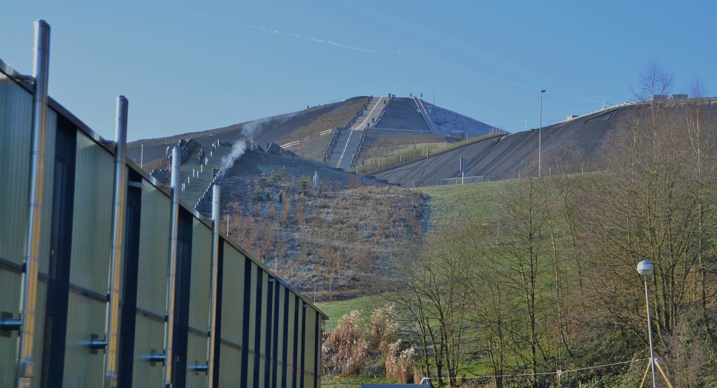 Denn hier hat man auf der ehemaligen Leppedeponie nicht nur das Bergische Energie – Kompetenzzentrum gebaut, sondern über Jahre einen riesigen Müllberg geschaffen, der immer mehr Besucher anzieht. Über mehr als 350 Stufen, ca. 400 Meter Fußweg und dann noch über einen steilen Weg gilt es den „Berg“ zu erklimmen. Oben angekommen wird man in über 350 Meter Höhe nicht nur mit einer tollen Rundumsicht verwöhnt, wenn man will, kann man dabei sogar Trampolin springen, gemütlich sitzen oder aber den halben Berg auf einer Rutsche wieder ins Tal hinunter rutschen.