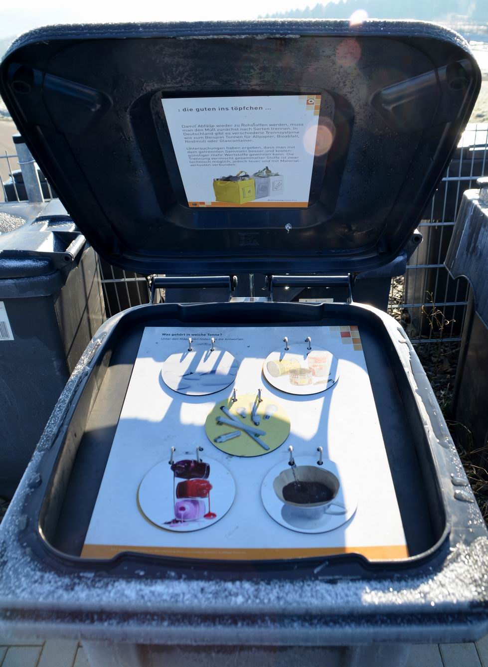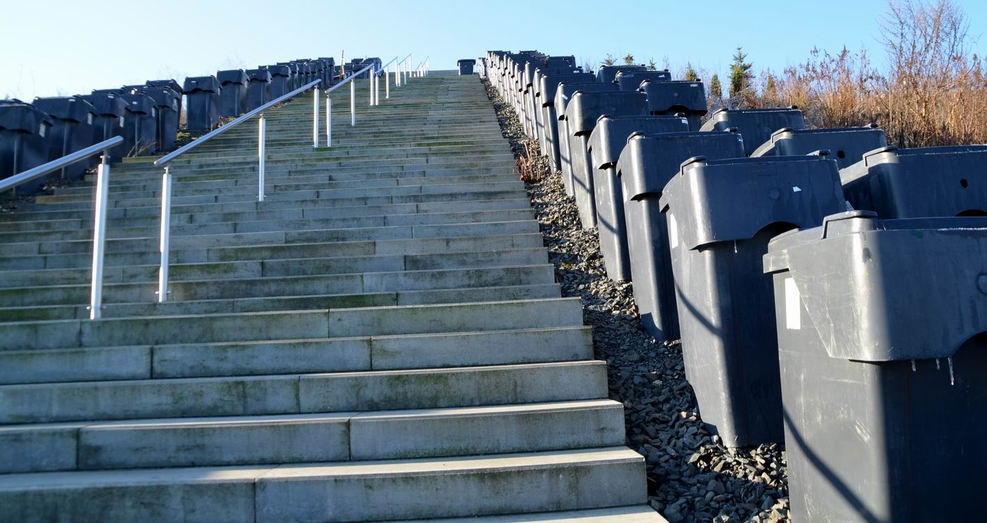 Der Aufstieg lohnt so oder so. Am Wegesrand kann der „Bergsteiger“ sich über den Weg des Mülls erkunden, indem er „Interaktive Mülltonnen“ benutzt.