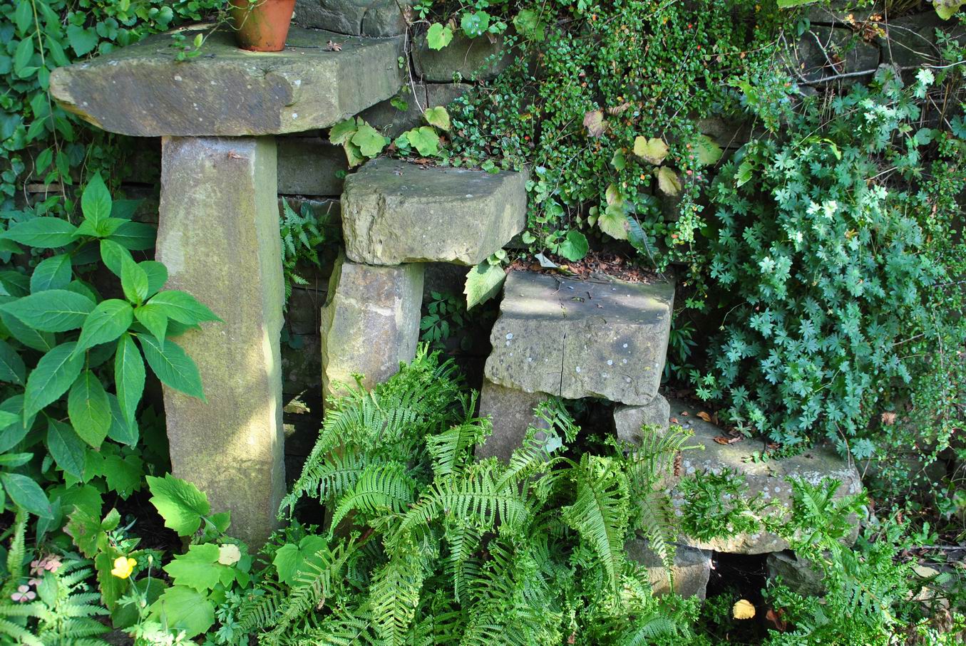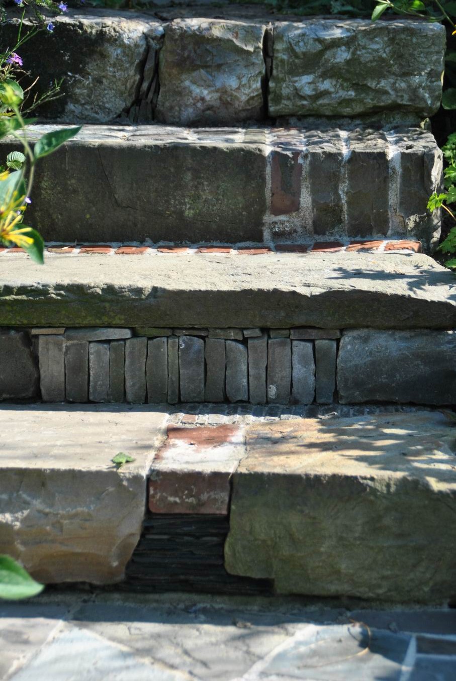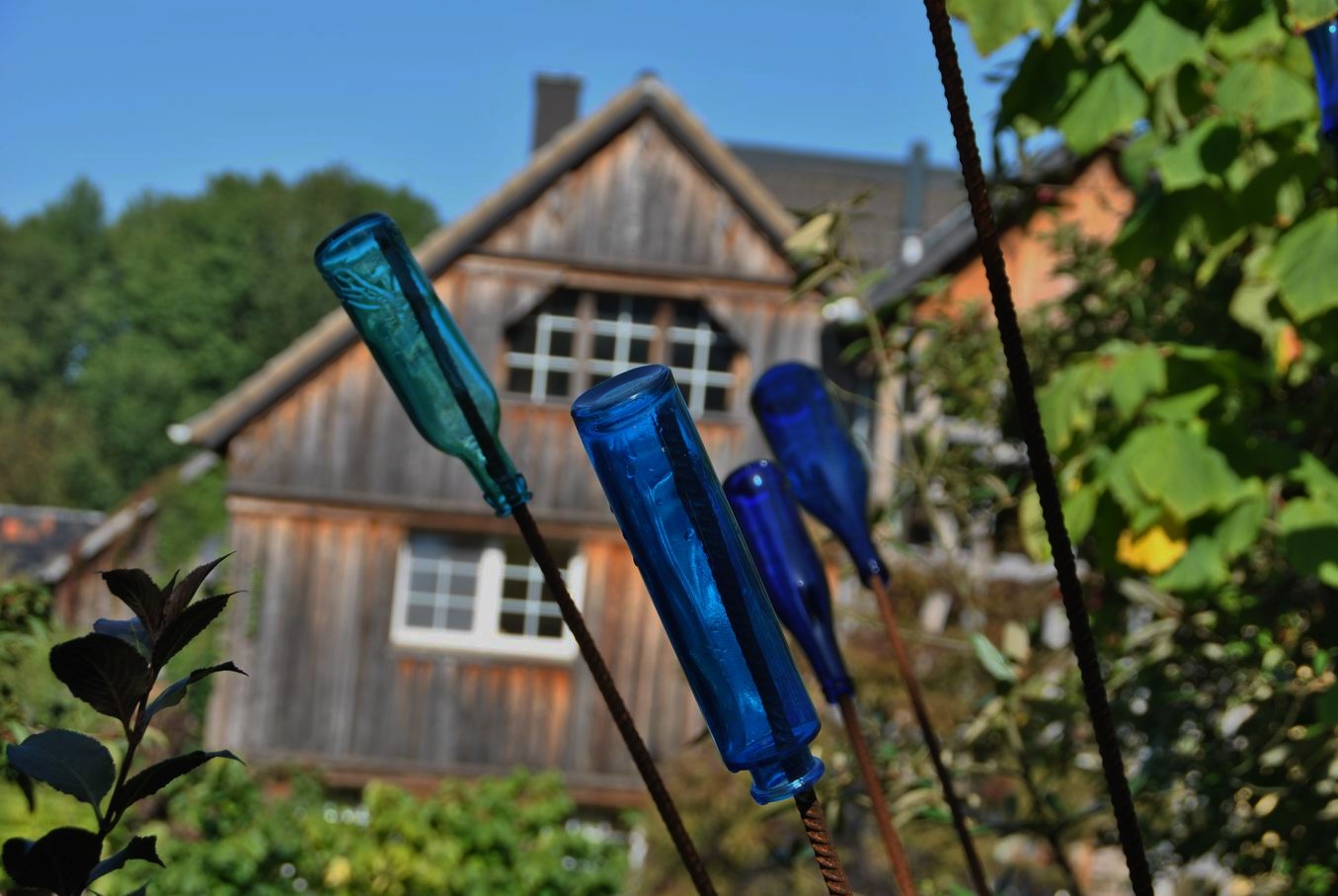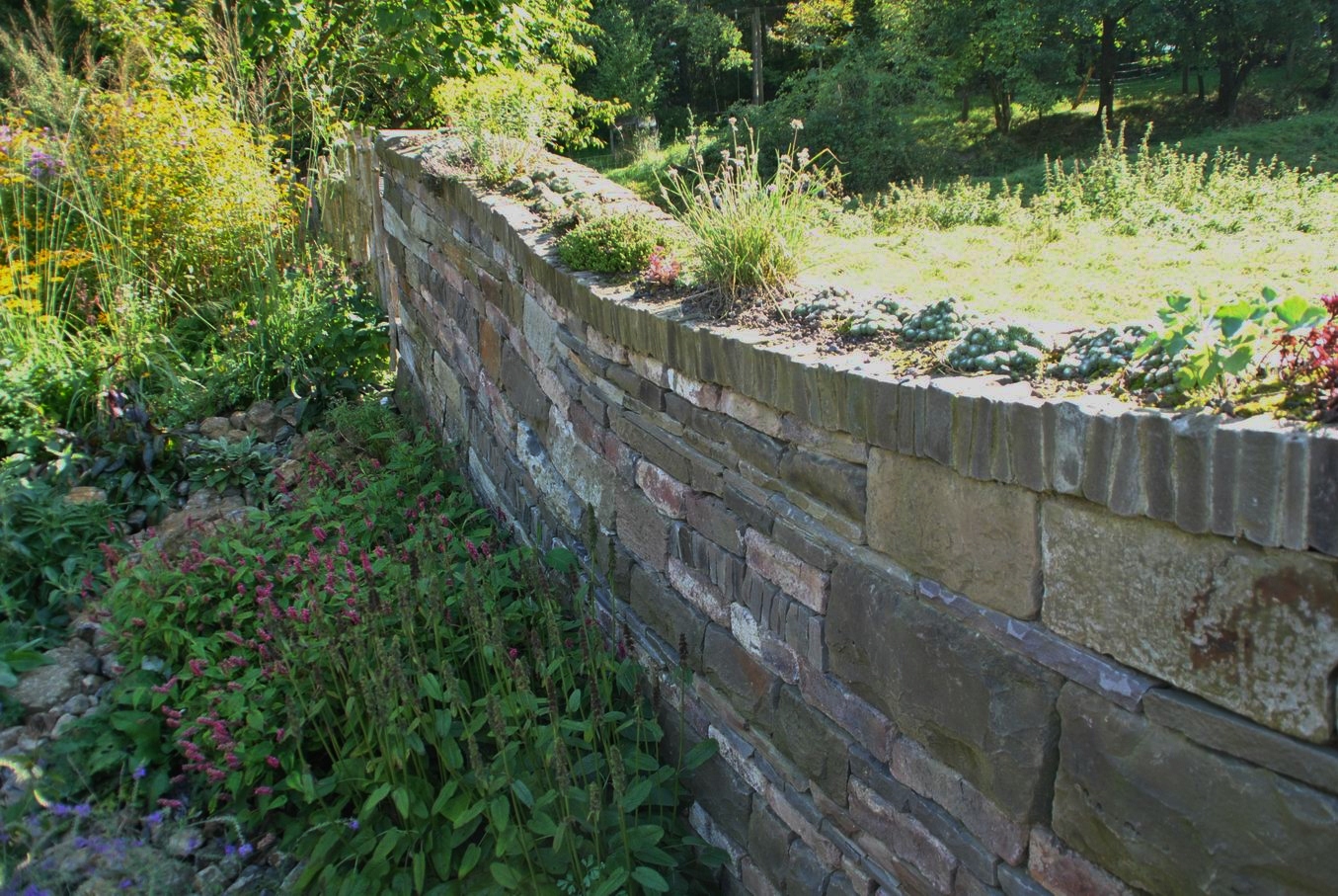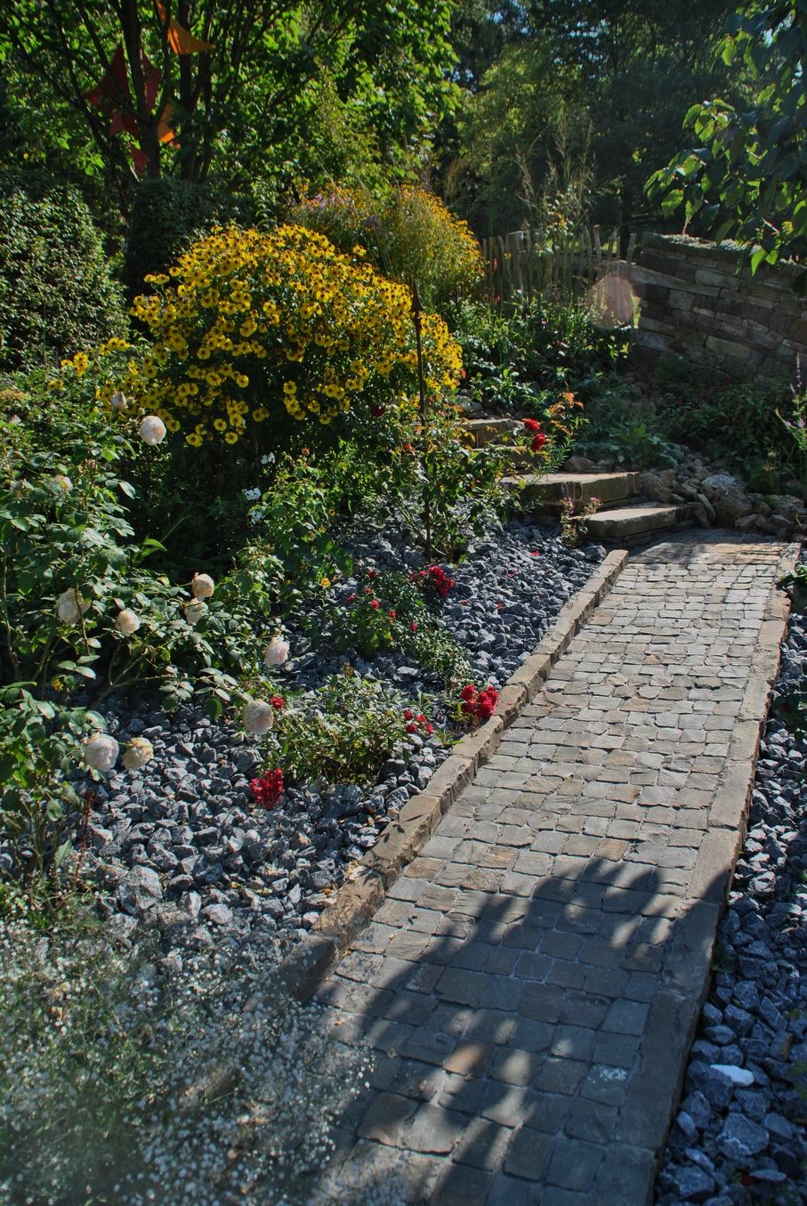 Was die beiden Gärtner aus dem ehemaligen Hofanlage gemacht haben kann sich sehen lassen. Über 800 Tonnen Natursteine wurden seid mitte der 90. Jahre für Wege, Treppen und Mauern verbaut. Über 1200 verschiedene Pflenzensorten bekommt der Besucher zu sehen.