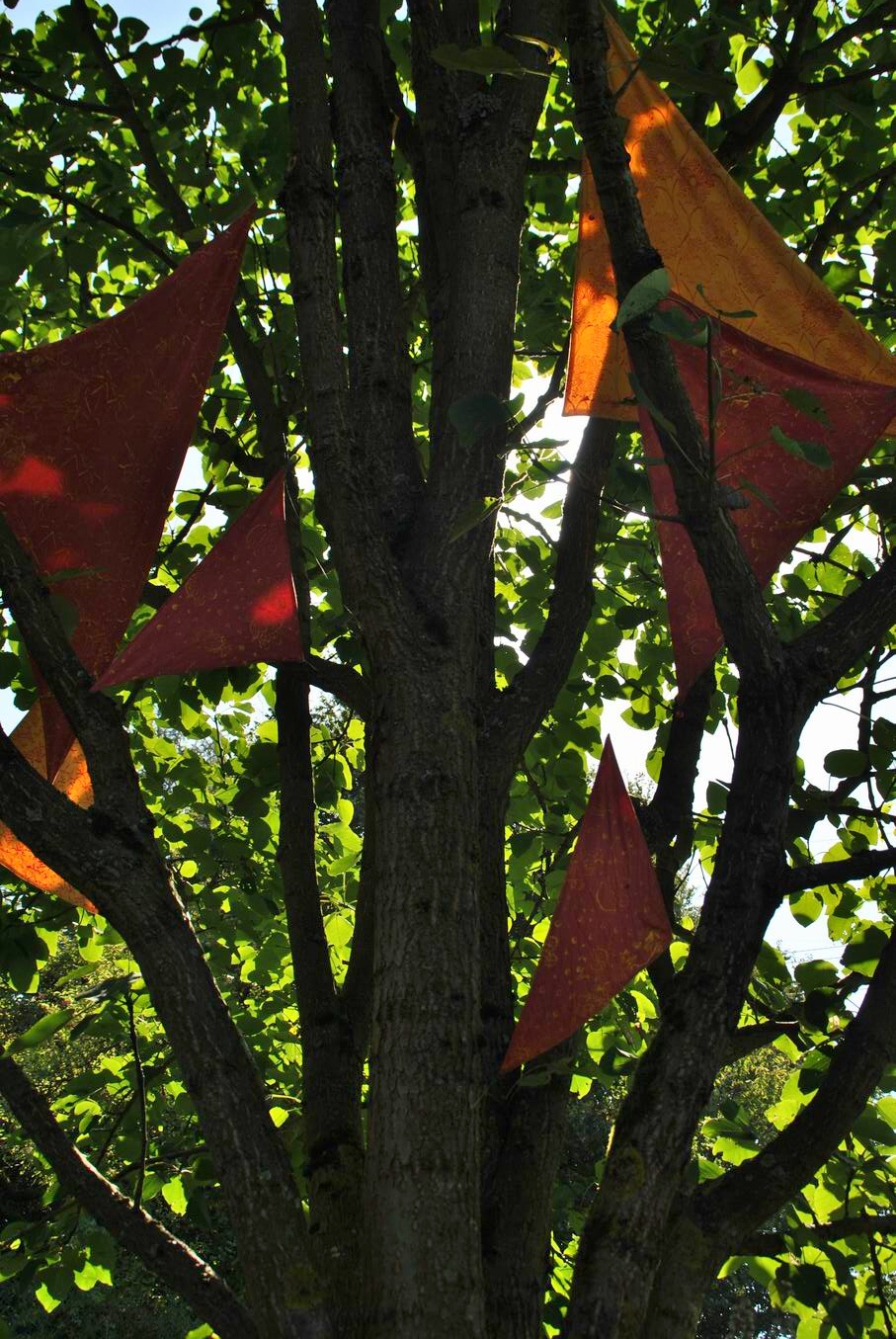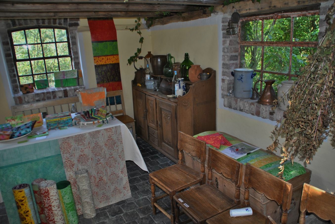 In einer aus alten Ziegelsteinen gebauten Gartenhütte stellte die Künstlerin Anja Büscher z.B. Taschen alles Art und Deko im Segeltuchdesign aus.