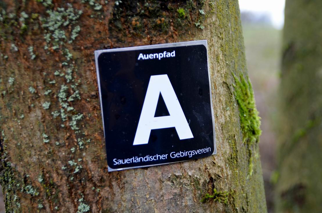 Unterhalb der Steine folgen wir links dem Weg, der zurück auf den alten Auenpfad Weg führt. Wir überqueren zum letzten Mal die L 320 und gehen durch eine Allee großer alter Bäume und laufen über eine Brücke nochmals über die Bröl. Hier kann man unter anderem auch die Wasseramsel bei der Arbeit beobachten. Ein paar Meter weiter sind wir wieder am Ausgangspunkt angelangt.
