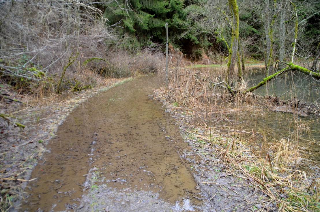 Allein bei sehr vielem Niederschlag sind die Wege teilweise nur schwerlich zu begehen, bzw. stehen sie schon mal an kleinen Teilstücken komplett unter Wasser.