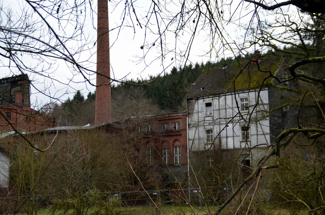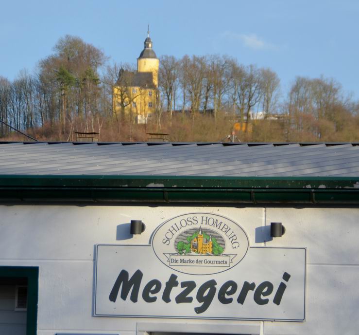 Wir laufen an dem ehemaligen Bahnhof von Nümbrecht vorbei, hier ist heute die Firma „Schloß Homburg“ von Heiner Weiß untergebracht.