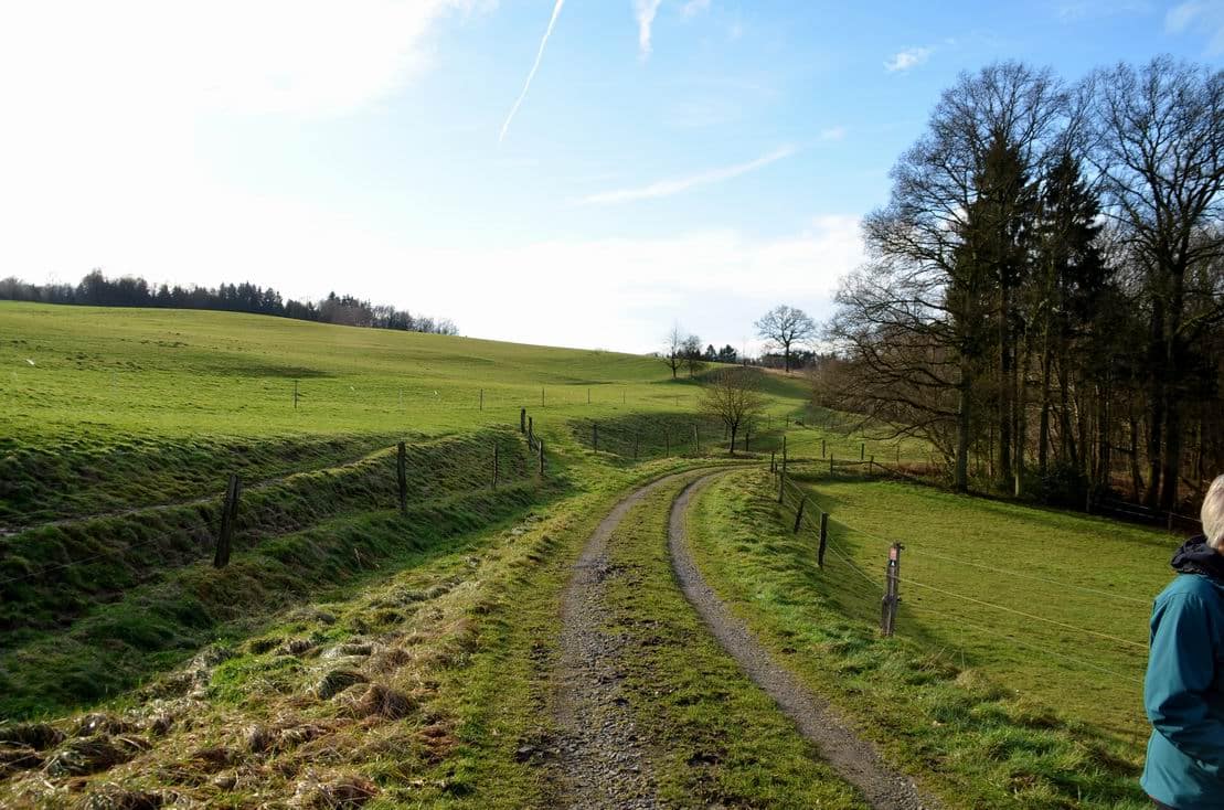 a) Sie gehen links die Straße rein, und laufen über Huppichteroth zurück zum Ausgangspunkt, oder…
