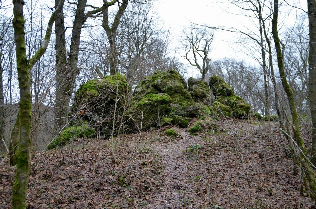 Hier liegen mitten im Wald große Quarzitsteine, die Überbleibsel längst vergangener Erdenzeiten. Auch hier gibt es eine interaktive Schautafel, die genau erklärt, warum die Steine genau da liegen, wo sie sind.