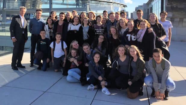 Am Dienstag und Mittwoch empfing er zwischen einigen Terminen fünf Besuchergruppen mit 200 Schülerinnen und Schülern aus dem Oberbergischen. Darunter drei Klassen aus seiner alten Heimat Wipperfürth aus der 9. Jahrgangstufe des St.-Angela-Gymnasiums und zwei Abiturjahrgangsgruppen der Gesamtschule Marienheide.