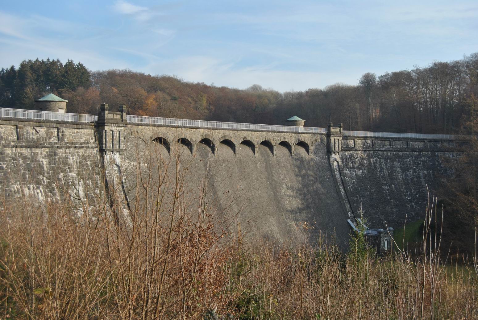 Die Staumauer wurde zwischen 1905 und 1908 erbaut und seitdem können dort ca. 6.000000 Kubikmeter Wasser gespeichert werden. Die Dammkrone ist 206 Meter lang.